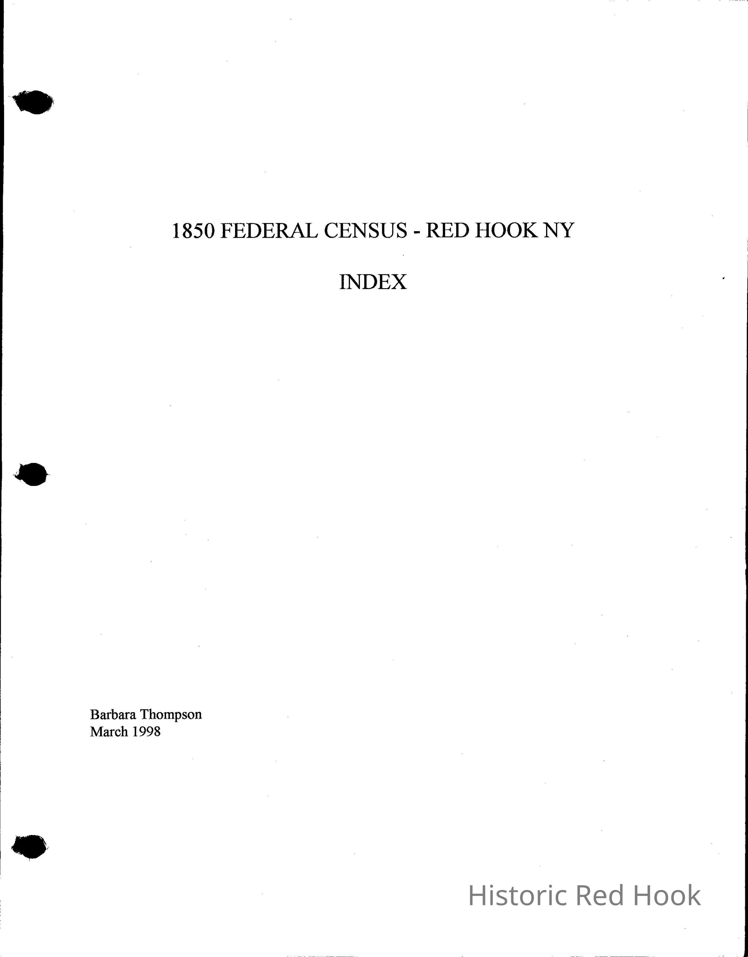 Census data and Index to the 1850 Federal Census for town of Red Hook.