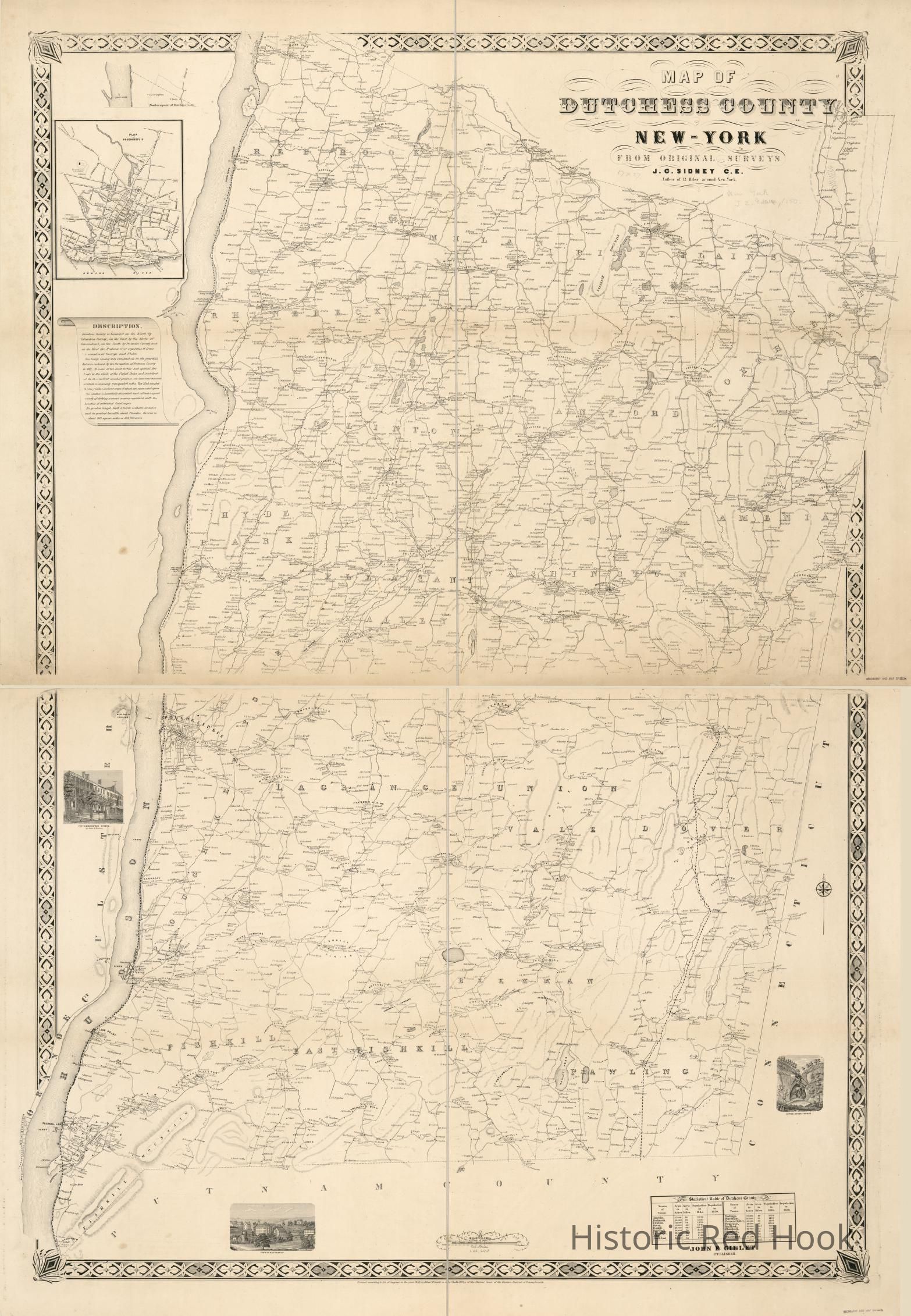1850 John E. Gillette Map of Dutchess County - Photostats of Red Hook, Rhinebeck, Milan SectionsEntry/Object ID