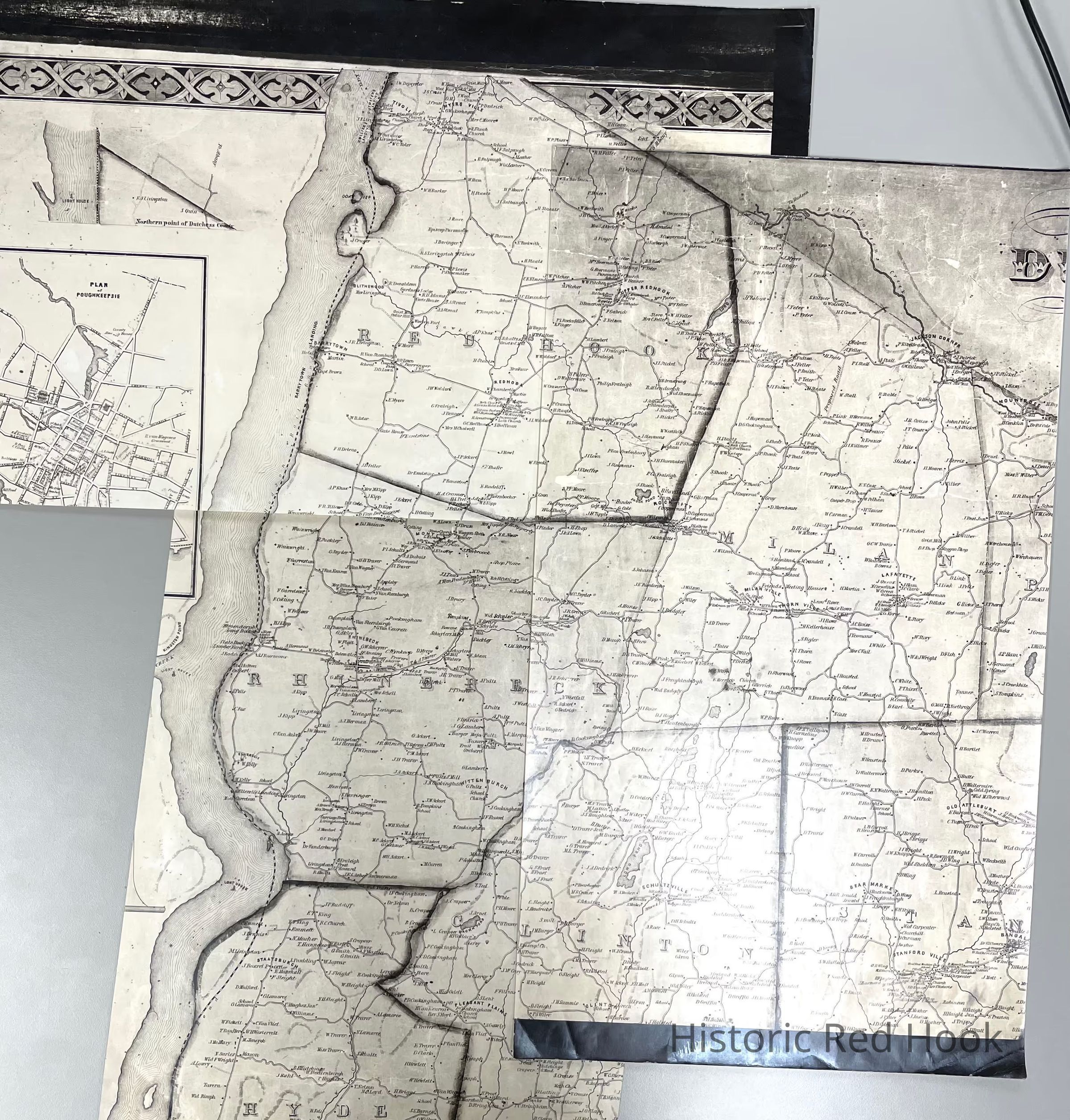 Photostats of maps of Towns of Red Hook, Rhinebeck, and Milan from John E. Gillette's Map of Dutchess County.