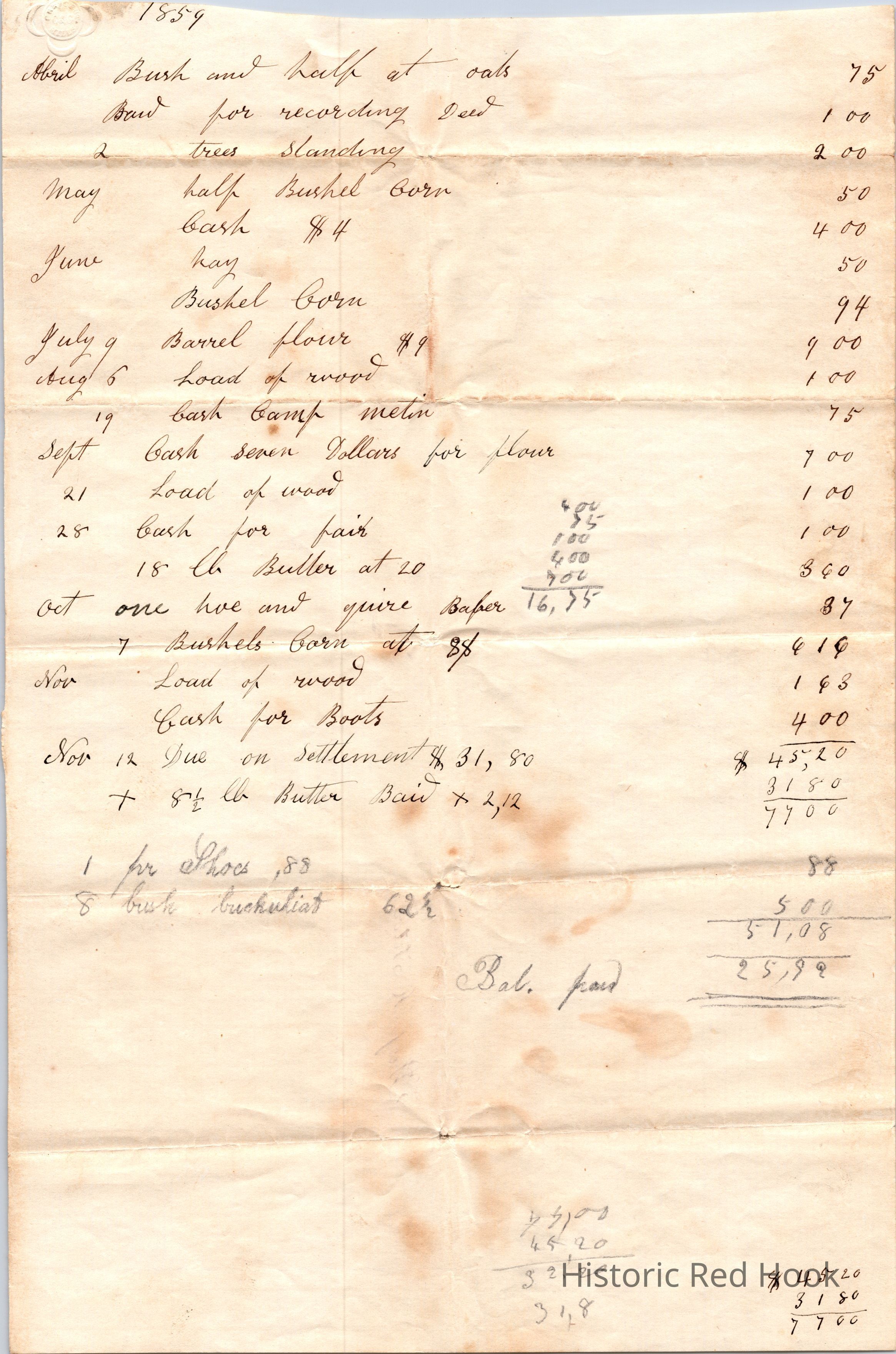 List of Items and Prices purchased by Philip Teator in 1859Collection