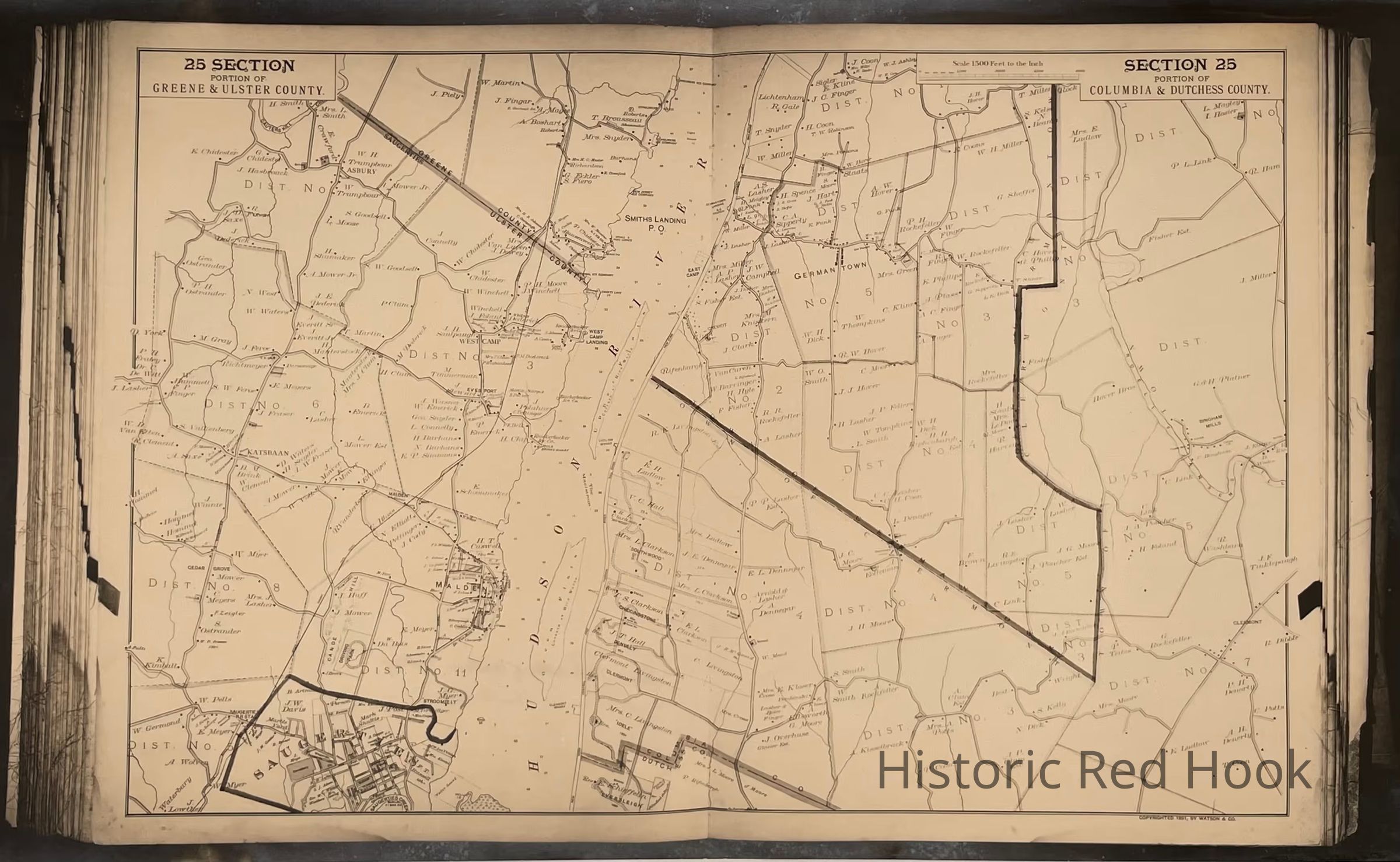 1891 Beers Map, Portion of Dutchess and Columbia County - northernmost tip of Red Hook - Section 25
