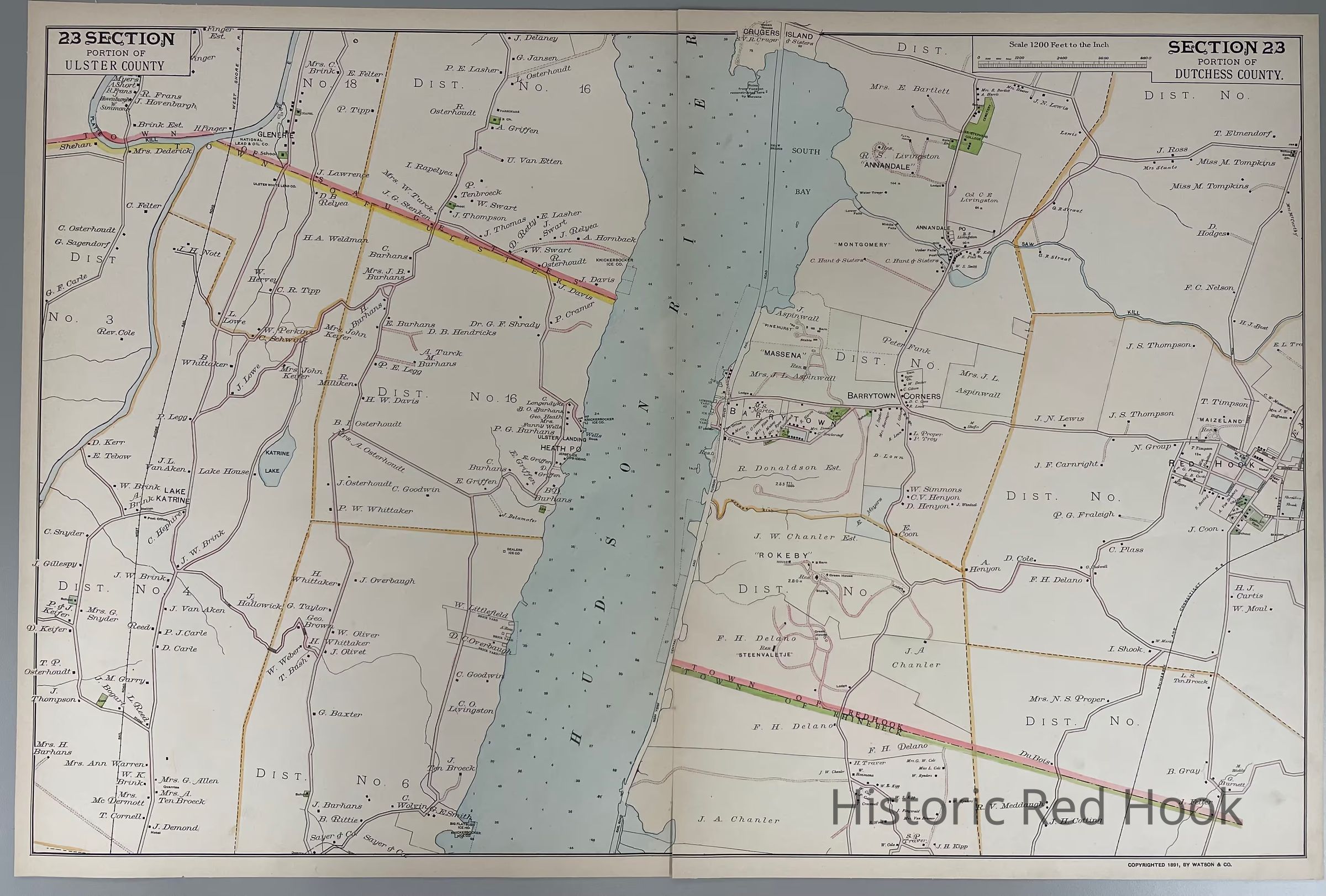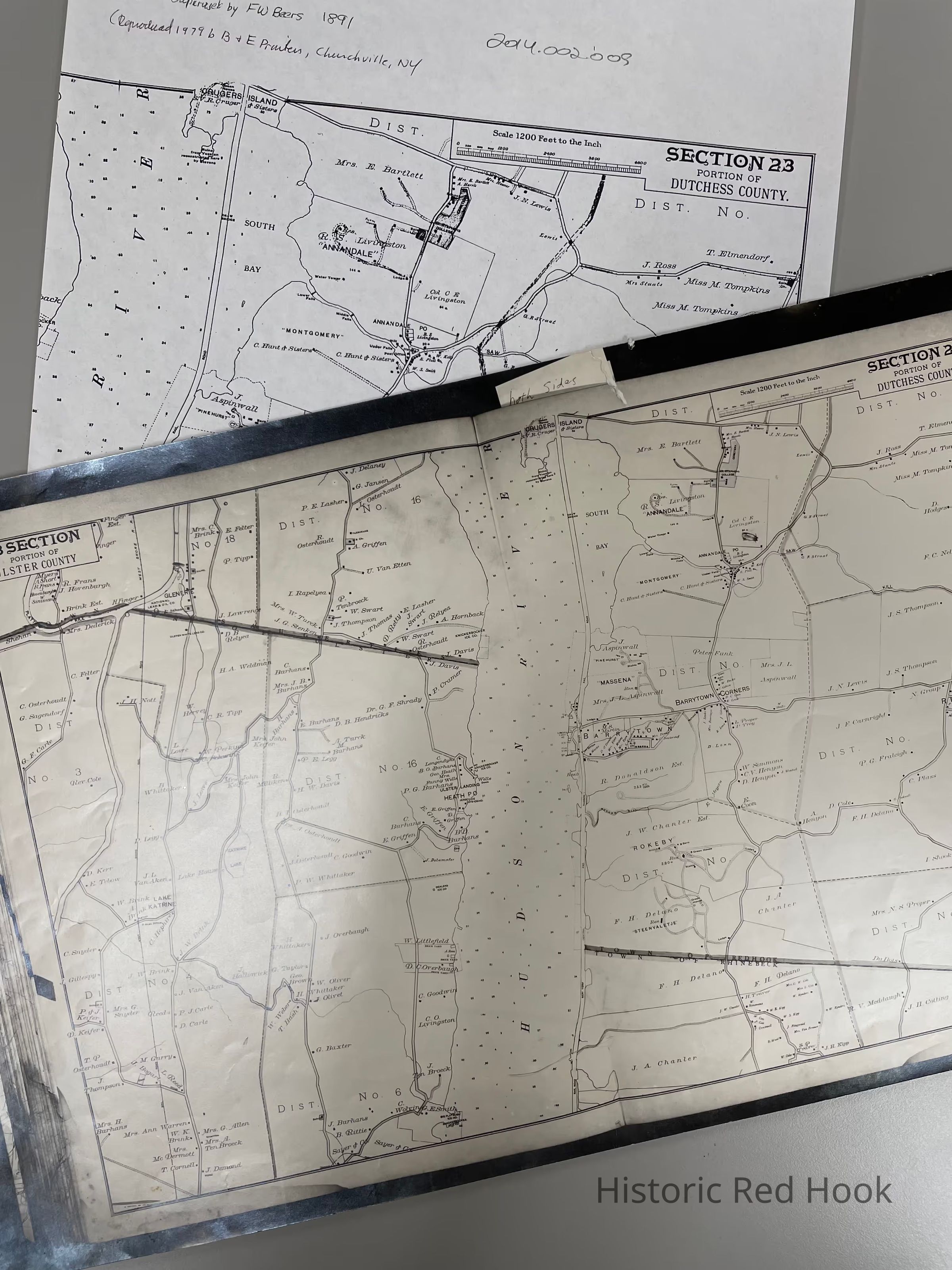 Original plate from Frederick W. Beers 1891 Atlas of Hudson Valley, Section 23, southern part of Red Hook. Plus photostat and photocopyCollection