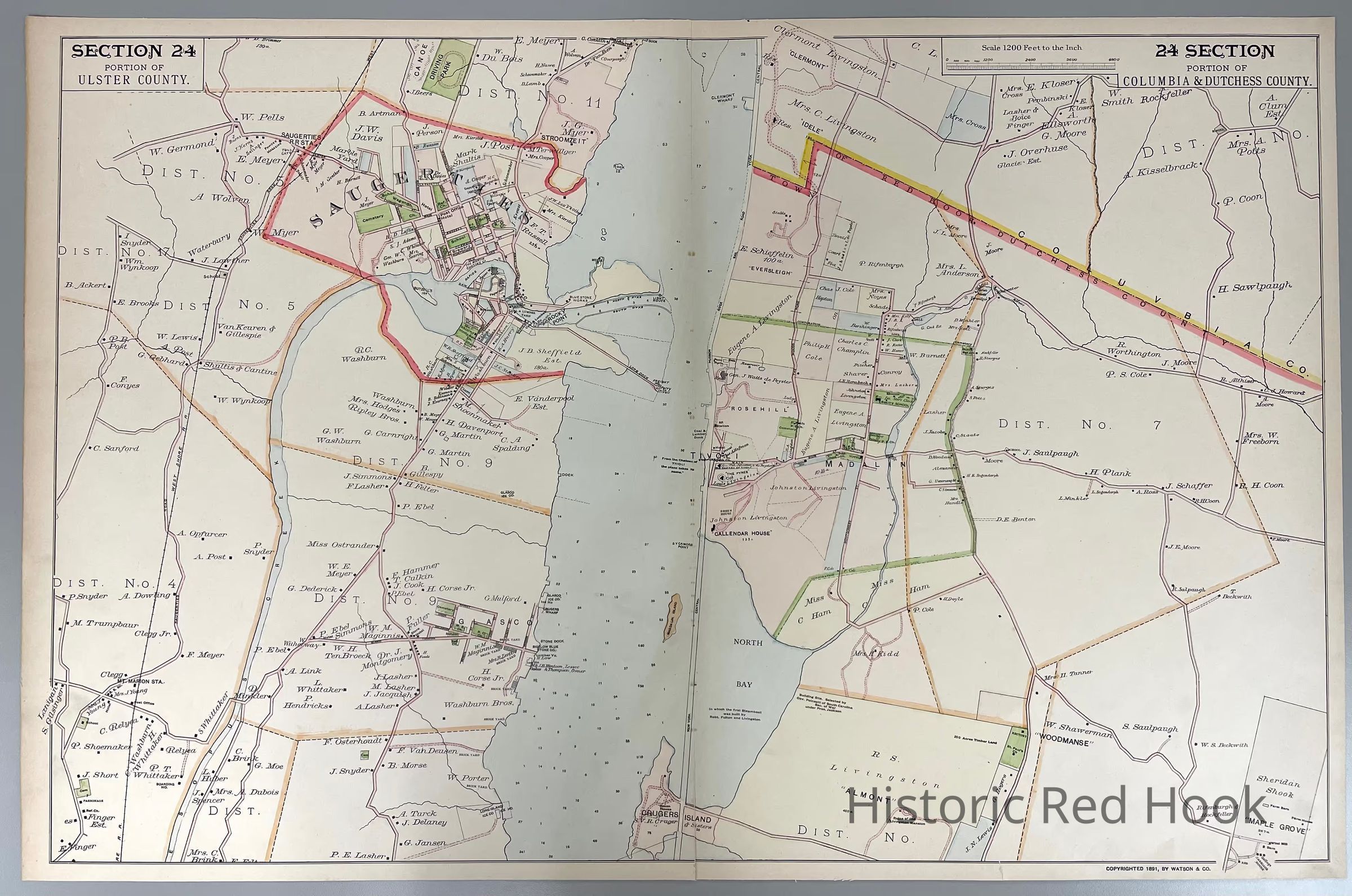 Original plate from 1891 Frederick W. Beers Map, Section 24, Crugers Island to Clermont (northern part of Red Hook).