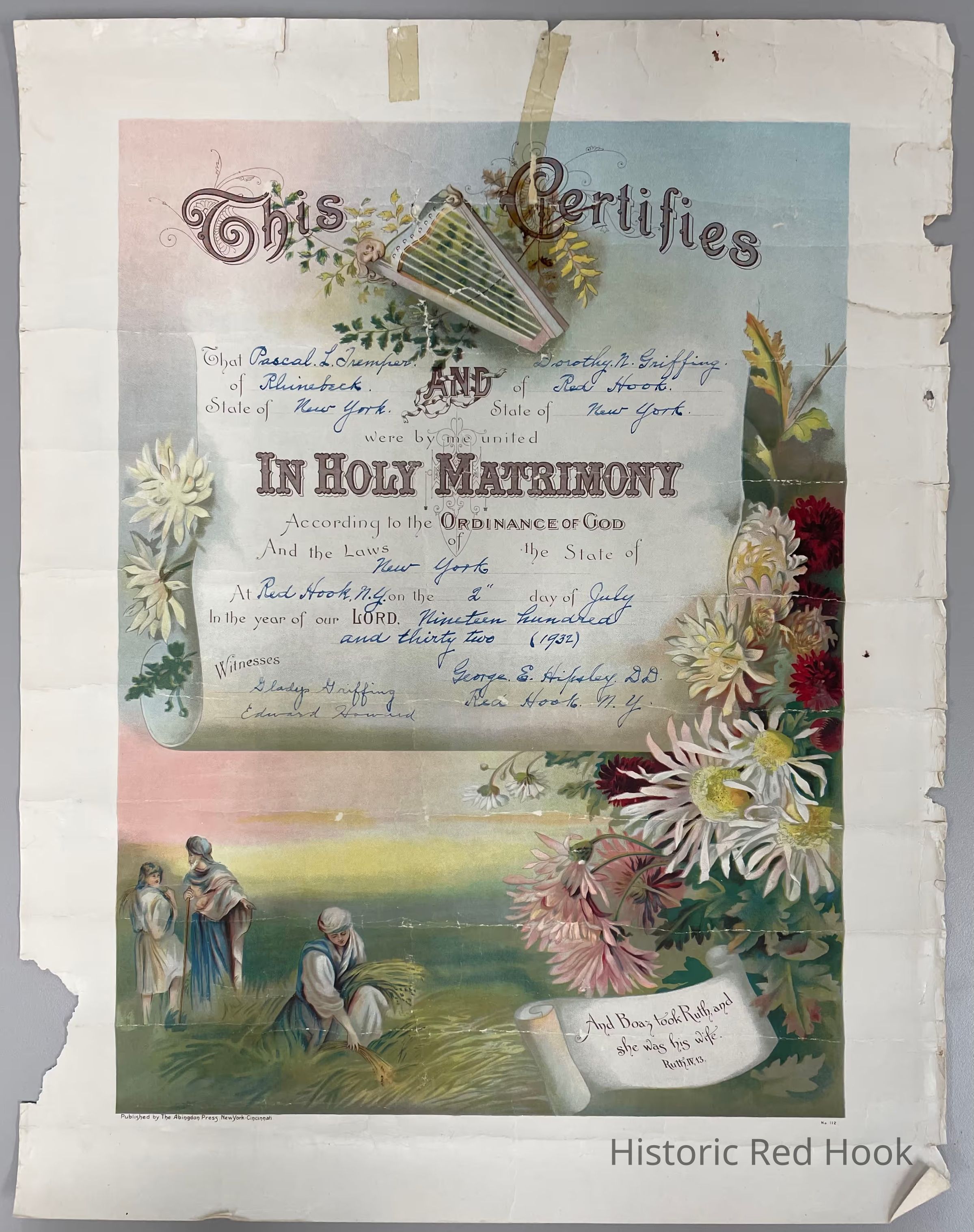 1932 Marriage Certificate, Pascal L. Tremper and Dorothy N. GriffingCollection
