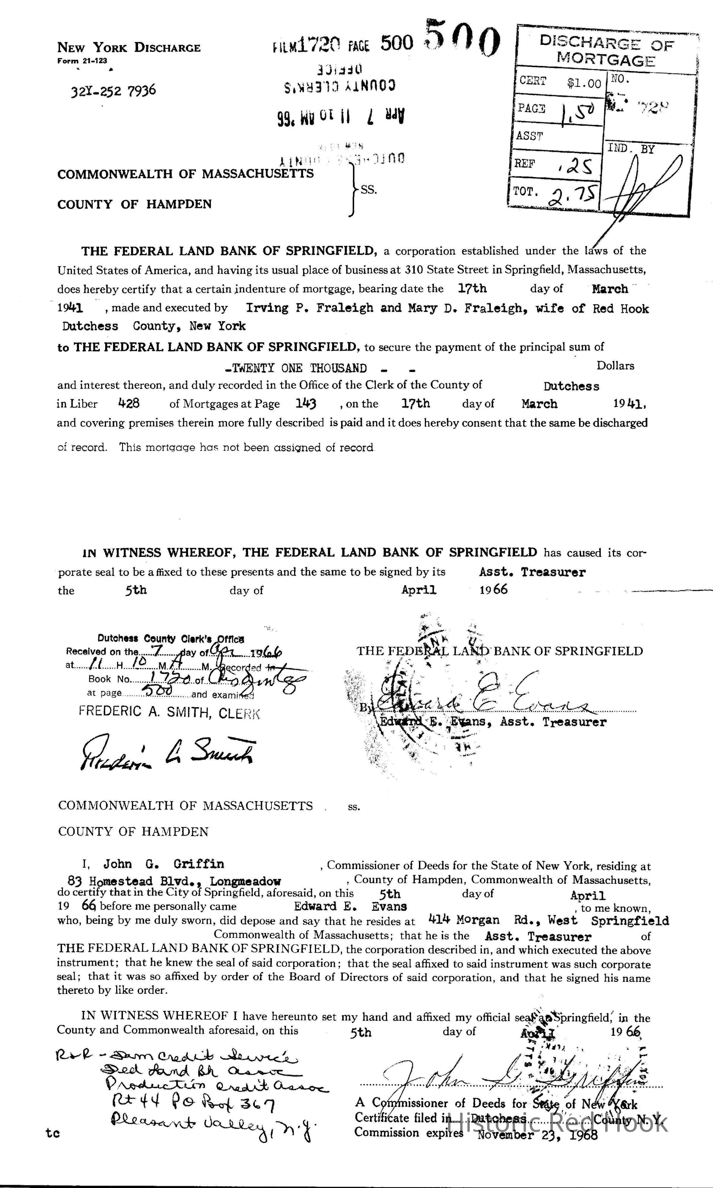 1941 Mortgage Discharged 1966, Irving P. and Mary D. FraleighEntry/Object ID