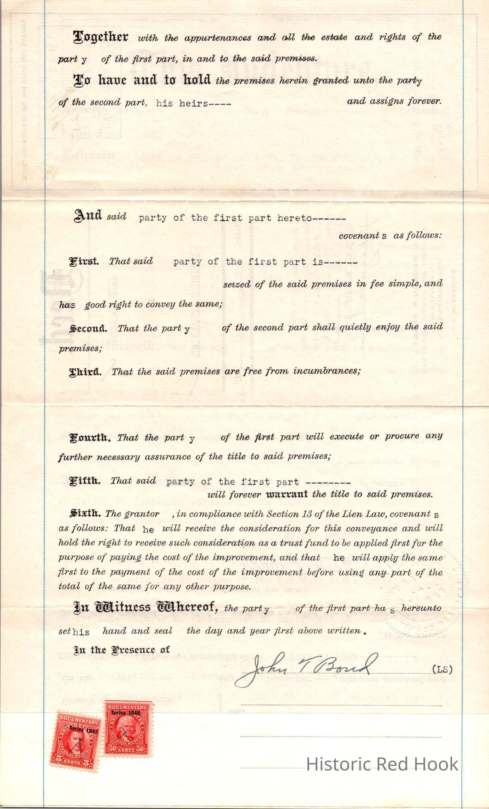 1945 Deed John T. Bond to Irving P. FraleighEntry/Object ID