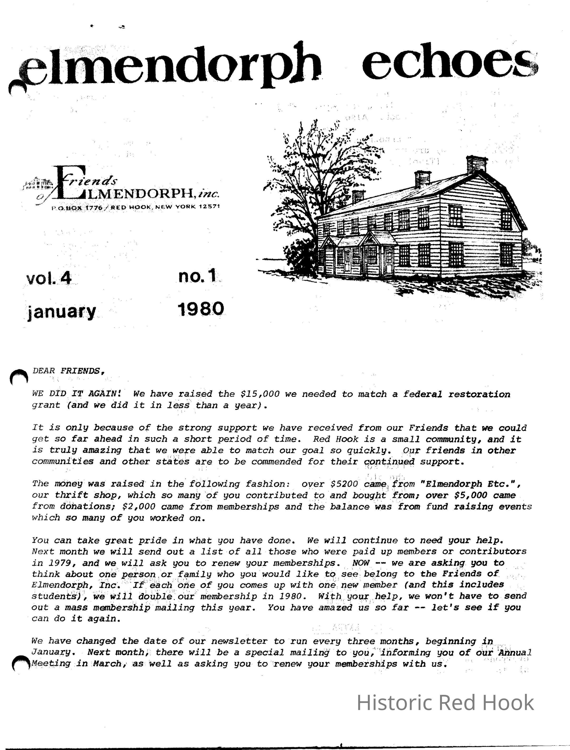 Newsletter created for the membership of the Friends of the Elmendorph.