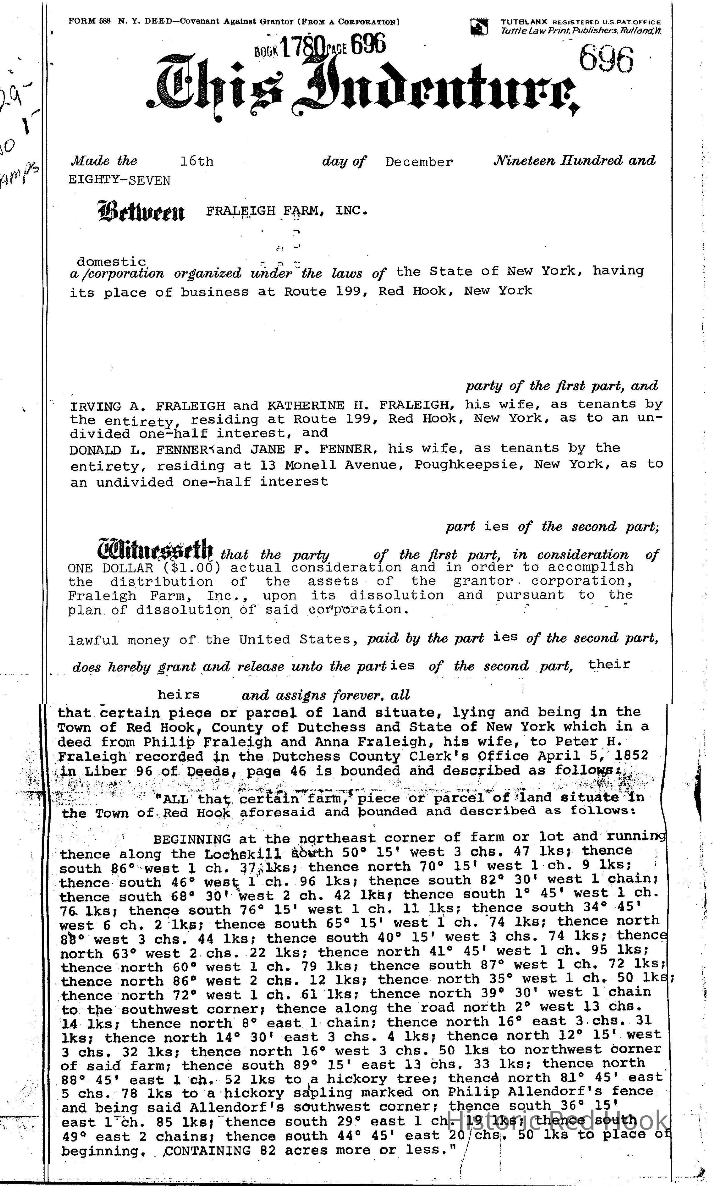 1987 and 1990 Deeds to Fraleigh Farm, splitting between Irving A.& Katherine Fraleigh and Donald L. & Jane F. FennerEntry/Object ID