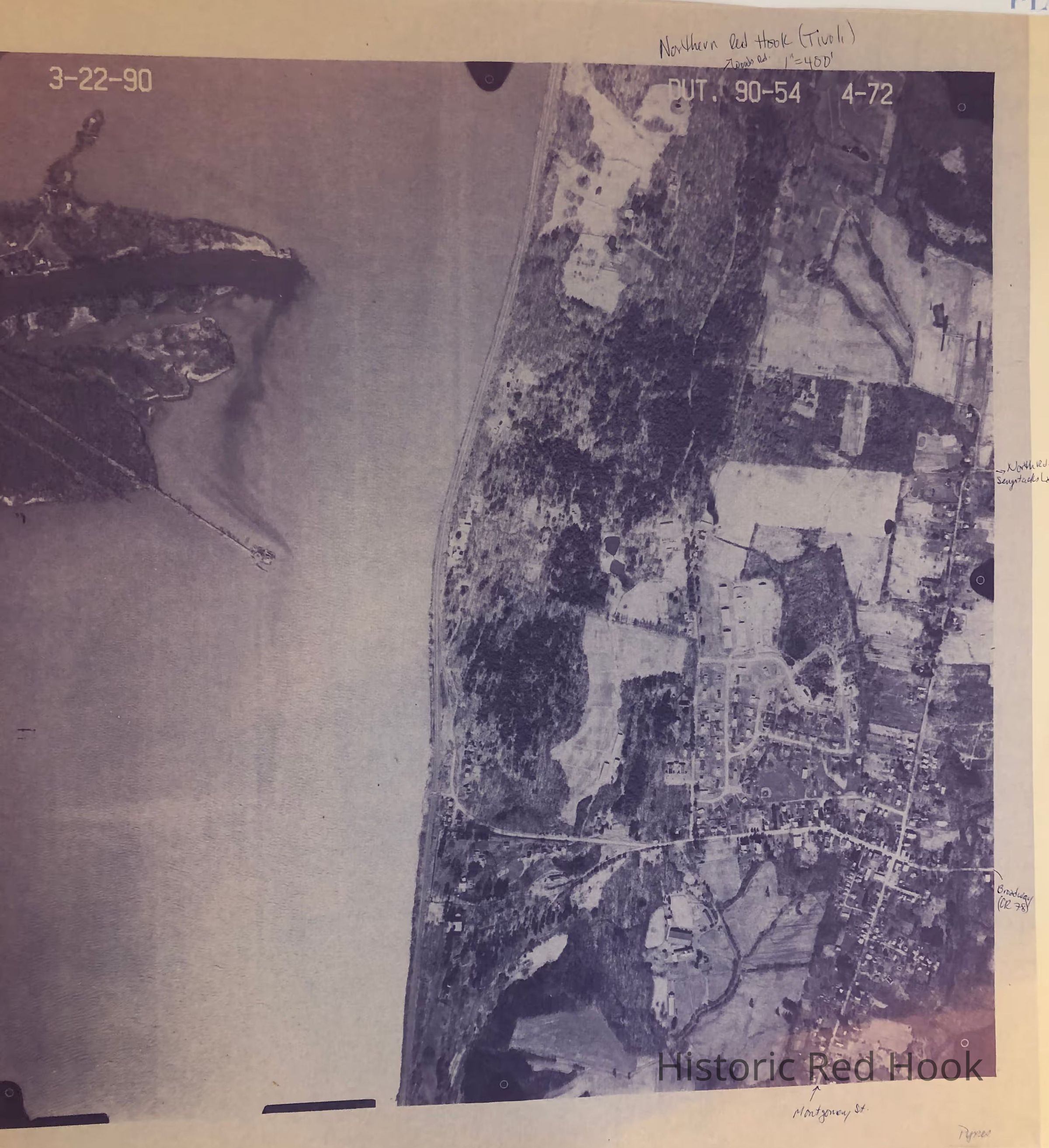 Aerial Map of Northern Red Hook (Tivoli) March 3, 1990 - photocopy. Scale 1" to 400'