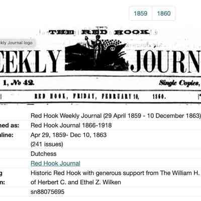 The Red Hook Weekly Journal, (1859-1863), published by Levi Piester. We have physical copies, microfilm and digital scans. Online access is through HRVH. (linked below)Publication Details