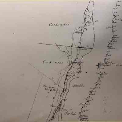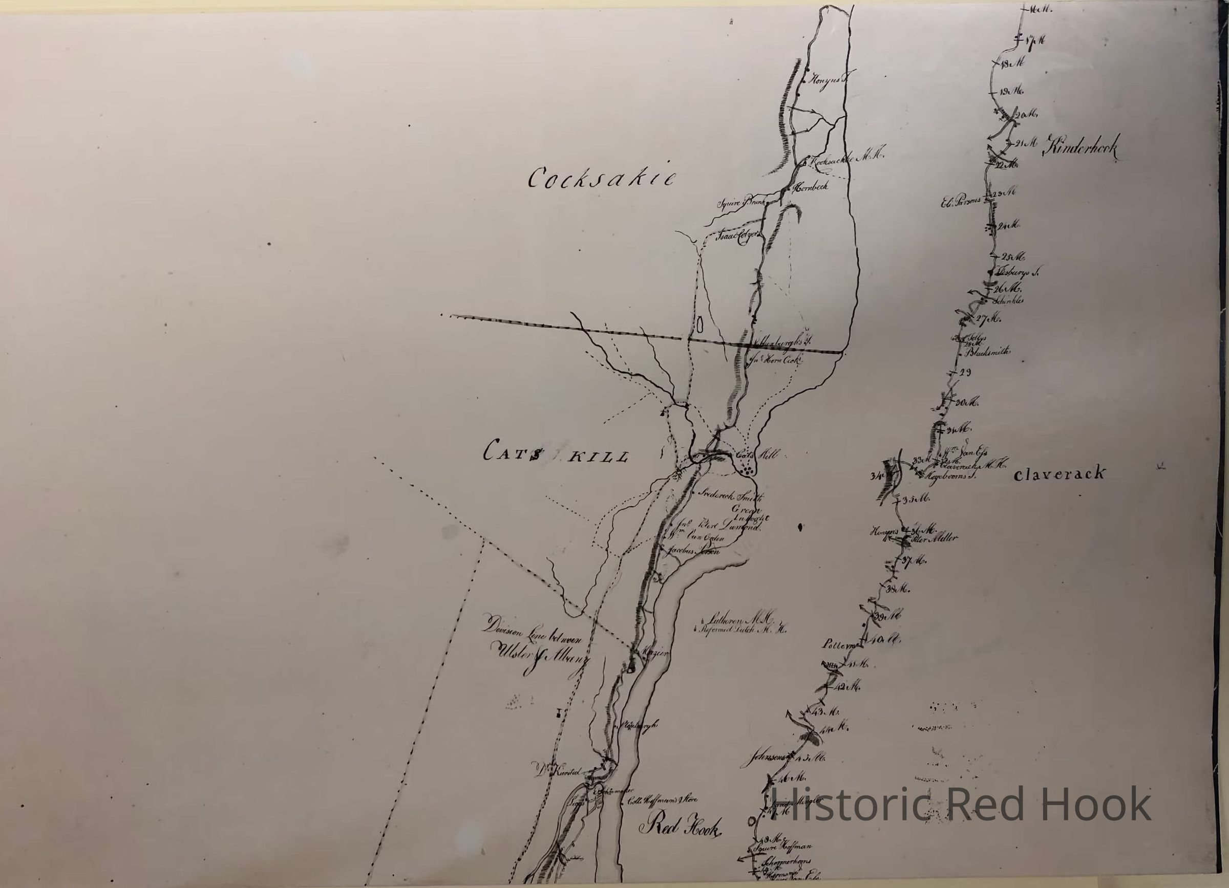 Photostats of Post Road from Poughkeepsie to Albany in 3 parts featuring the Mile Markers. Map # 349, NYS Library. 'Col. Hoffman's Store" and "Red Hook" marked.Collection