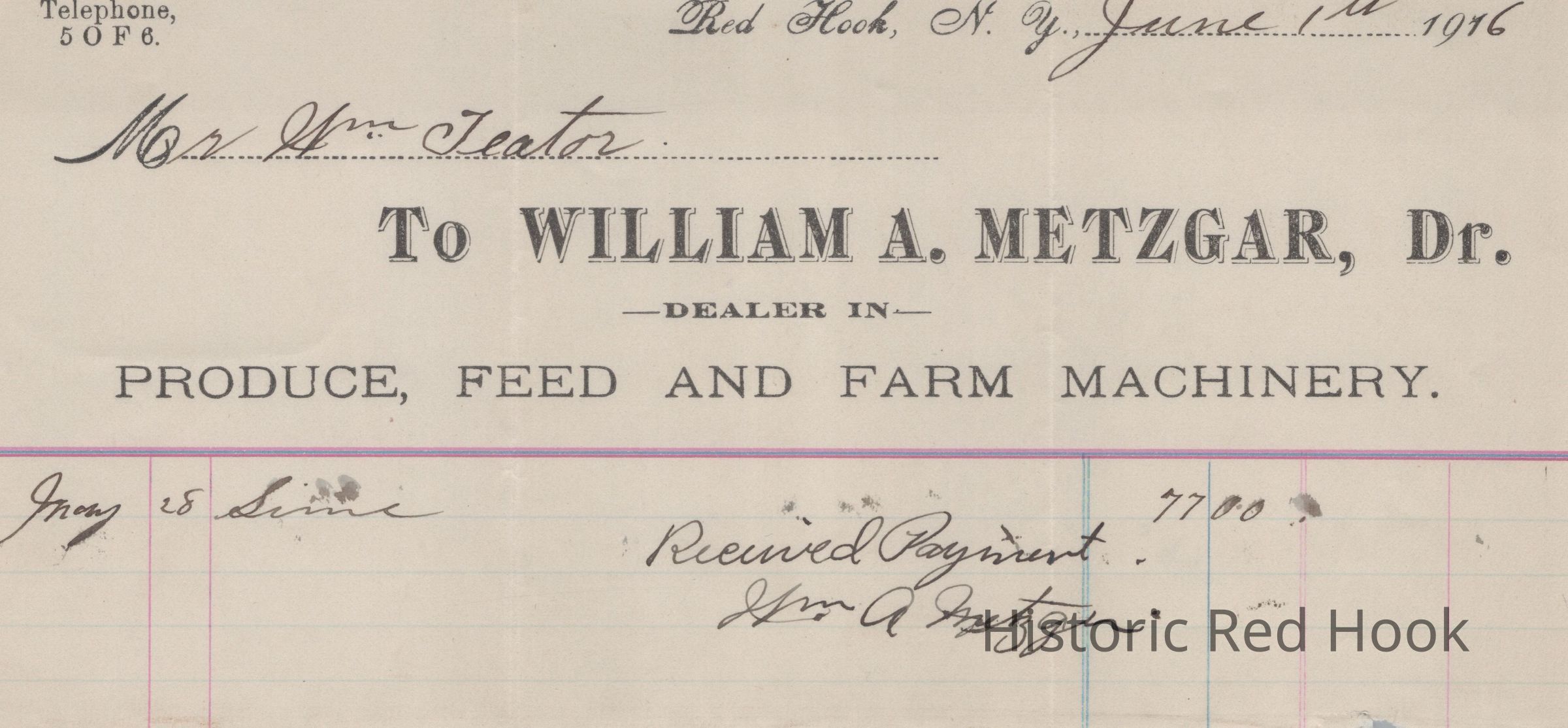 Invoice from William A. Metzgar, Dealer in Produce, Feed and Farm MachineryRelationships