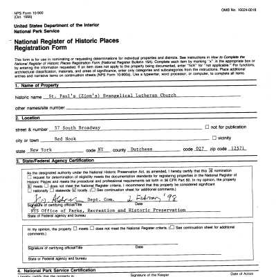 Photos and nomination form on file with the National Register of Historic Places for St. Paul's (Zion's) Evangelical Lutheran Church, 1998Collection