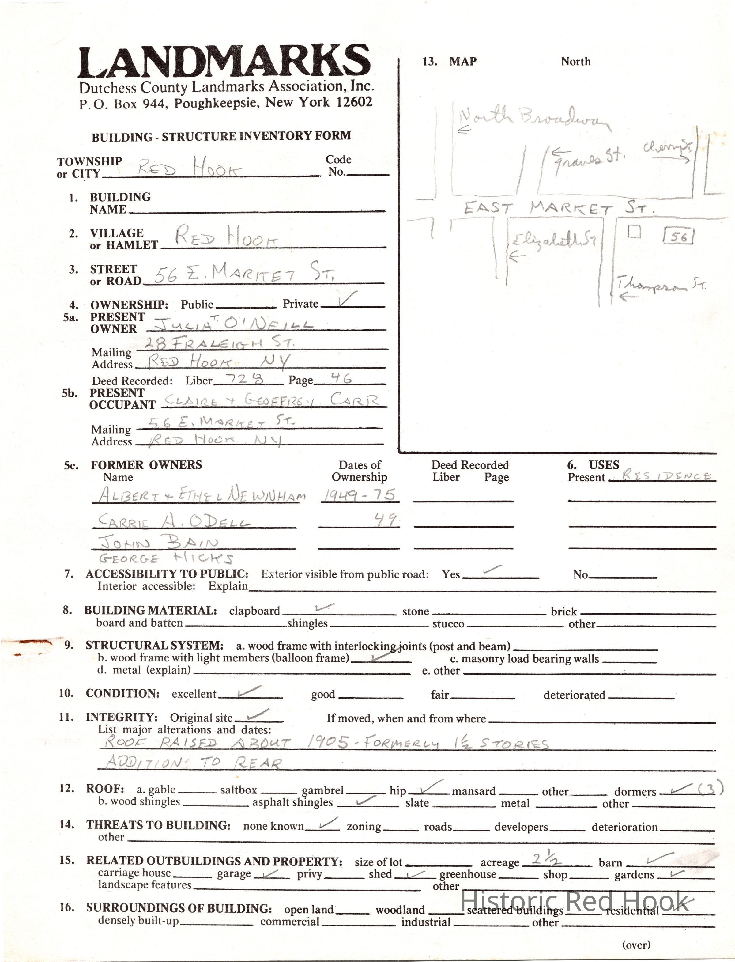 1975 Red Hook Village Survey. Includes photos and both Dutchess County Landmarks Form and NYS Parks and Recreation Building-Structure Inventory FormCollection