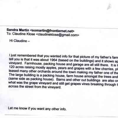 Aerial view of the Martin farm on Guski Road in Red Hook, NY, 1964, with notes from Sandra Martin.