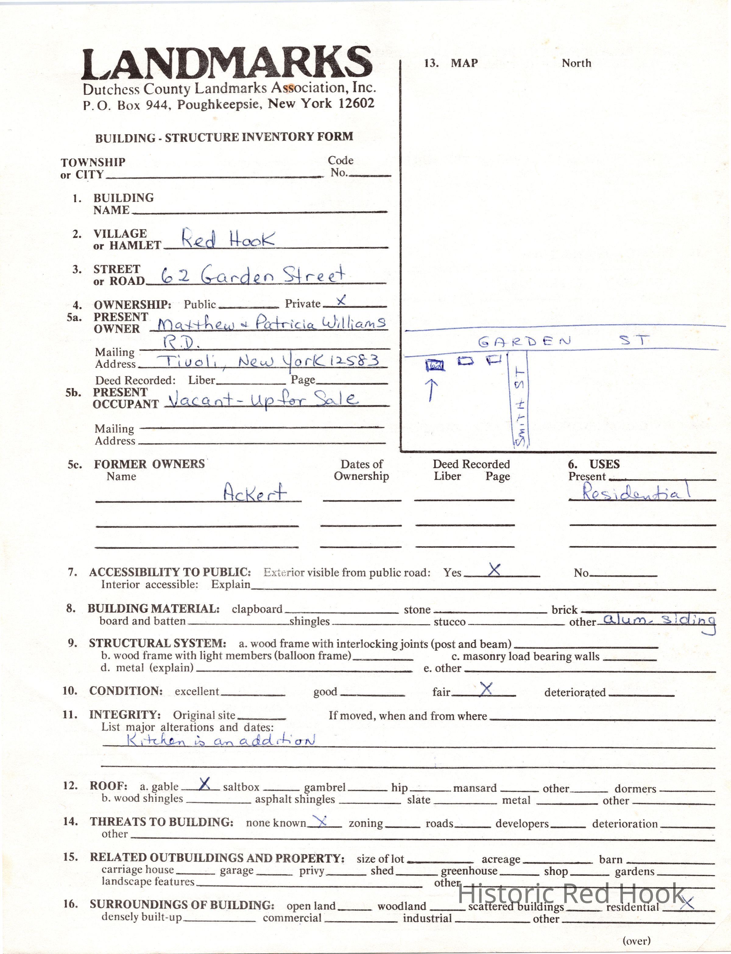 1975 Red Hook Village Survey. Includes photos and both Dutchess County Landmarks Form and NYS Parks and Recreation Building-Structure Inventory FormCollection