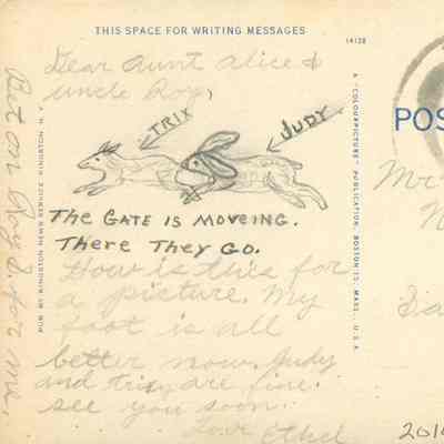 Drawn on back are images of two horses, Judy and Trix. A one cent stamp was used.Collection