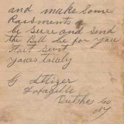 A letter from Geo. Altizer of Lafayette requesting a detailed bill for an overdue account with a promise for payment to Mr. J.H. Feroe Tivoli Dutchess Co. NY, dated December 27, 1898.