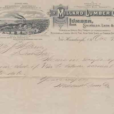 A receipt from Millard Lumber, New Hamburg, New York, dated October, 1898 acknowledging receipt of a check for the account balance of J. H. Feroe.Collection