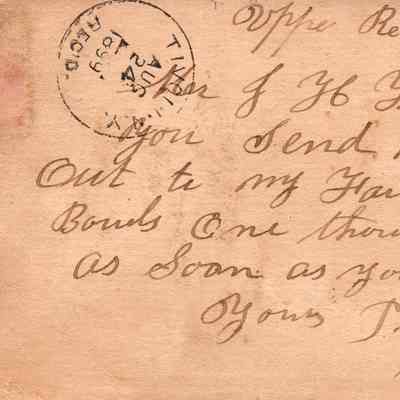 J. H. Feroe Postcard, August, 1899Entry/Object ID