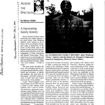 2003 Hudson River Heritage invitation honoring Wint Aldrich and article about Wint Aldrich from Taconic Newspapers, Jan 11, 2001.Relationships