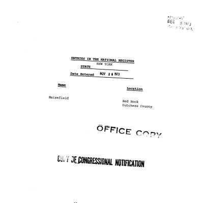 Photos and nomination form on file with the National Register of Historic Places for Maizefield (Maizeland), 1973Collection