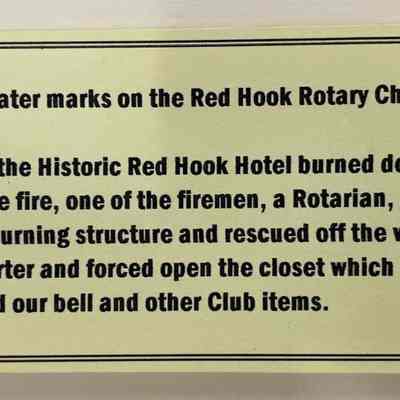 Rotary Club of Red Hook Certificate of Membership noting Red Hook Hotel acceptance into Rotary International.
