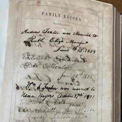 Records of Monfort, Teator, Cotting, Schutte families on family record pages 1826-1932.Collection