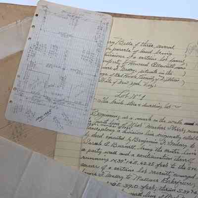 Survey: Oct 1909. Of above property.. Same was surveyed & laid out under direction of Gen. John Armstrong & leased to William Waldorf in 1801. Mentions estate of Daniel de Bogart, lot of 4 acres from Peter Tompkins to Jacob Elseffer in 1871, Benner farm, now owned by Robert Chanler, Farm of David Cole, now owned by Robert Chanler, farm leased in 1801 to Henry Cotting, land leased to Jacob Schultz in 1801 now R. Chanler, land late of Moses Schaffer, lands of Elizabeth Chapman 200 acres.