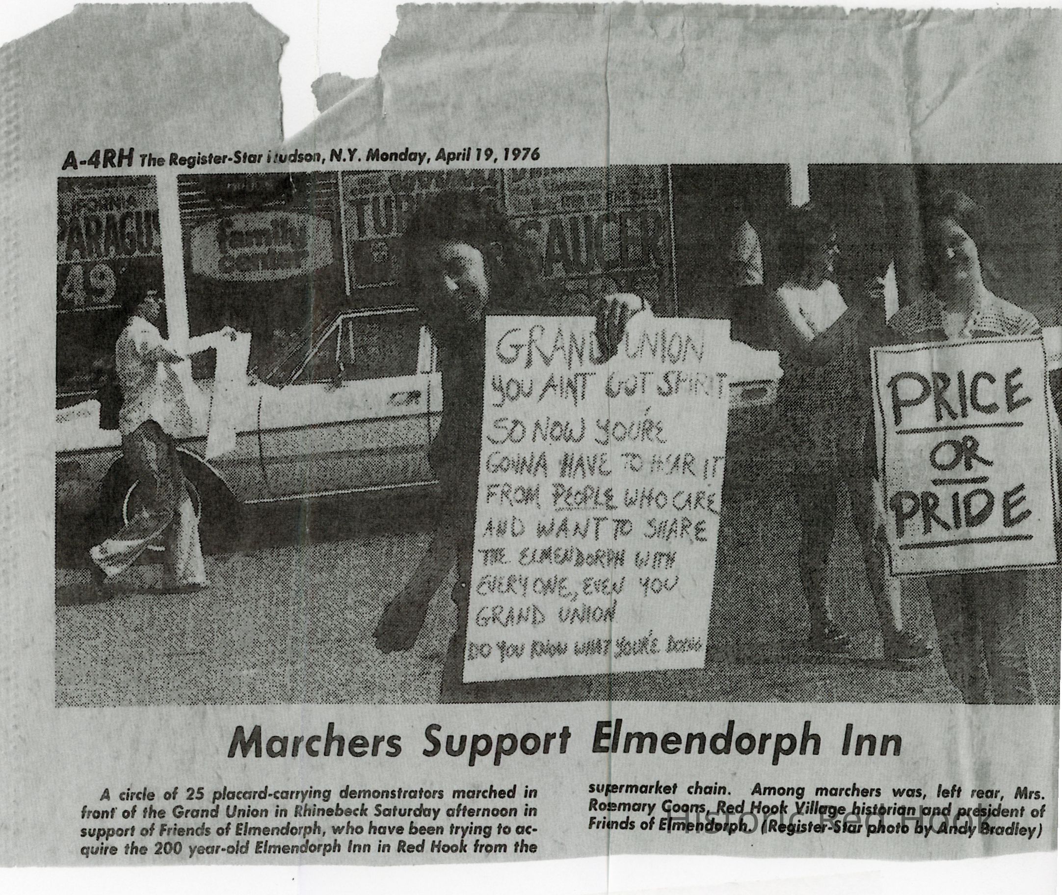 Clipping of article from the Hudson Register Star, April 19, 1976 about the demonstrations related to the negotiations to purchase the Elmendorph Inn from the Grand Union.Collection