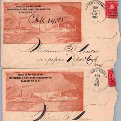 Envelopes from the Saugerties & New York Steamboat Co. to William S. Teator, 1910, 1912, 1914, 1924Relationships