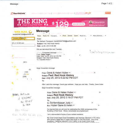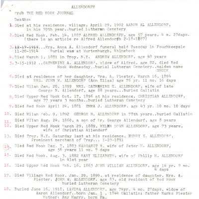 Research request, Brief History of Vanderburgh-Haas families and Red Hook Journal research, including information on Allendorph, Tremper and Stickle families.