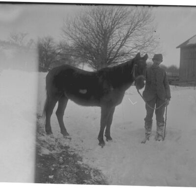 Unidentified man holding horse on W.S. Teator FarmPhotograph Details