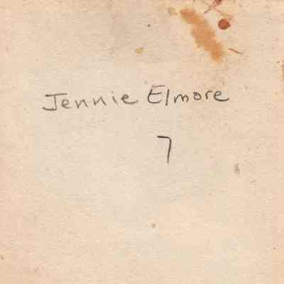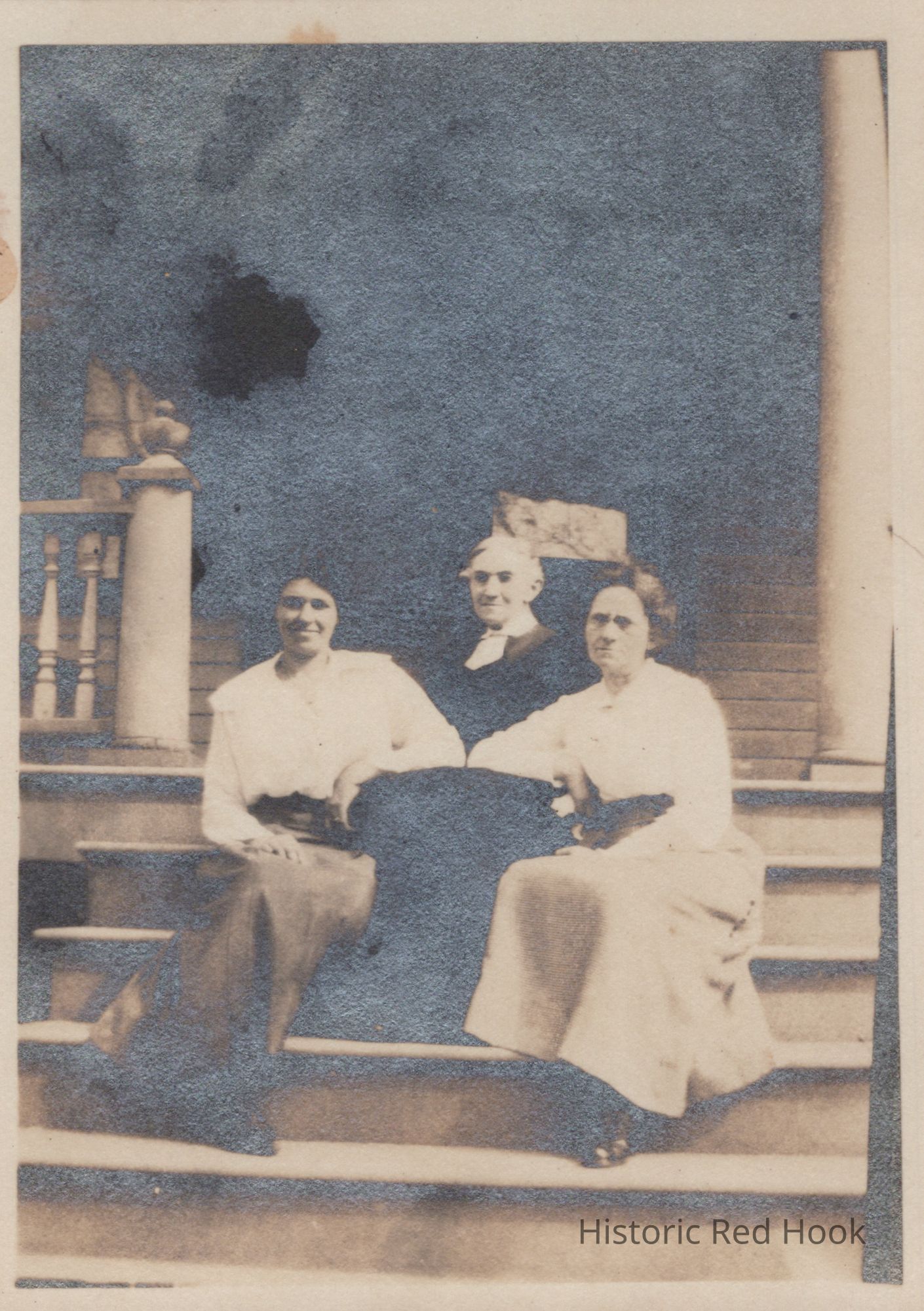 An informal photograph of three women seated on the front steps of a home with one of the women identified as Jennie Elmore.Photograph Details