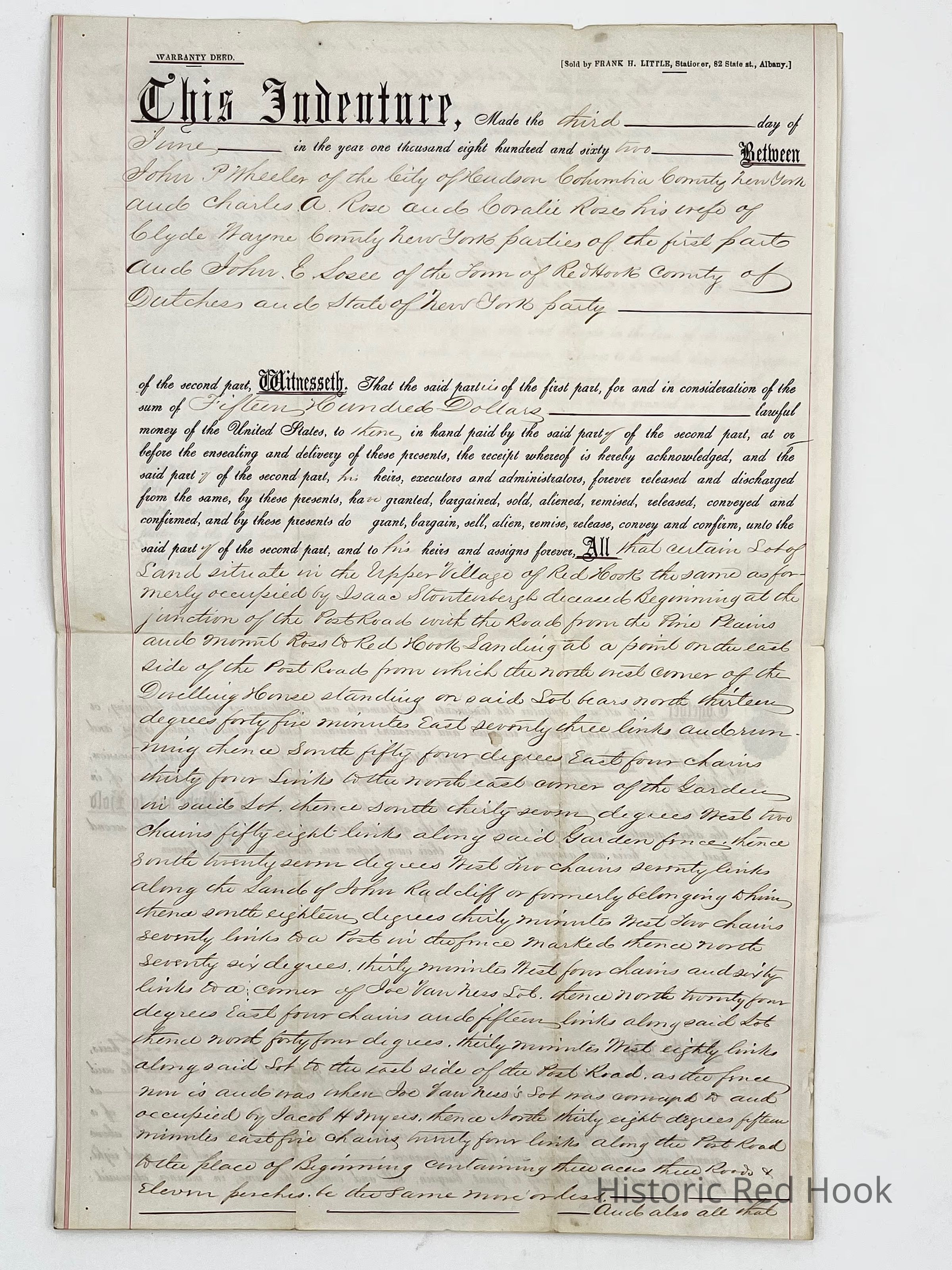 Deed, John P. Wheeler, Charles A. Rose & wife t John E. Losee 1862Entry/Object ID