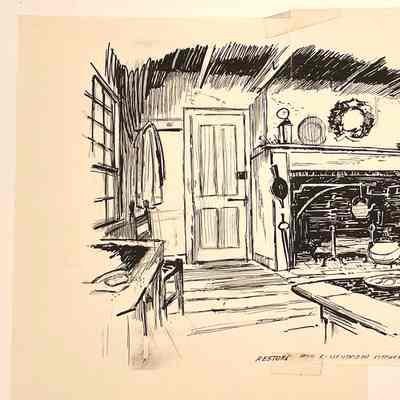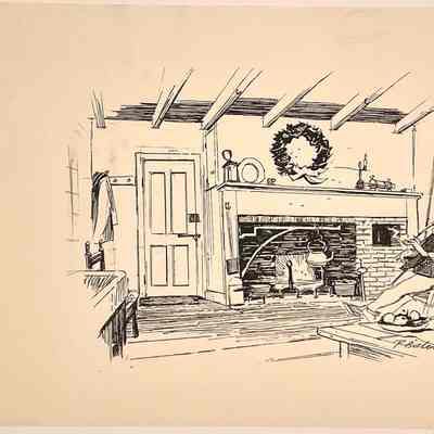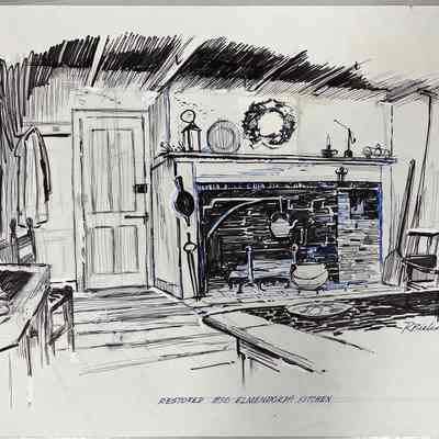 Robert Bielenberg illustration depicting the Elmendorph Inn's old Kitchen.