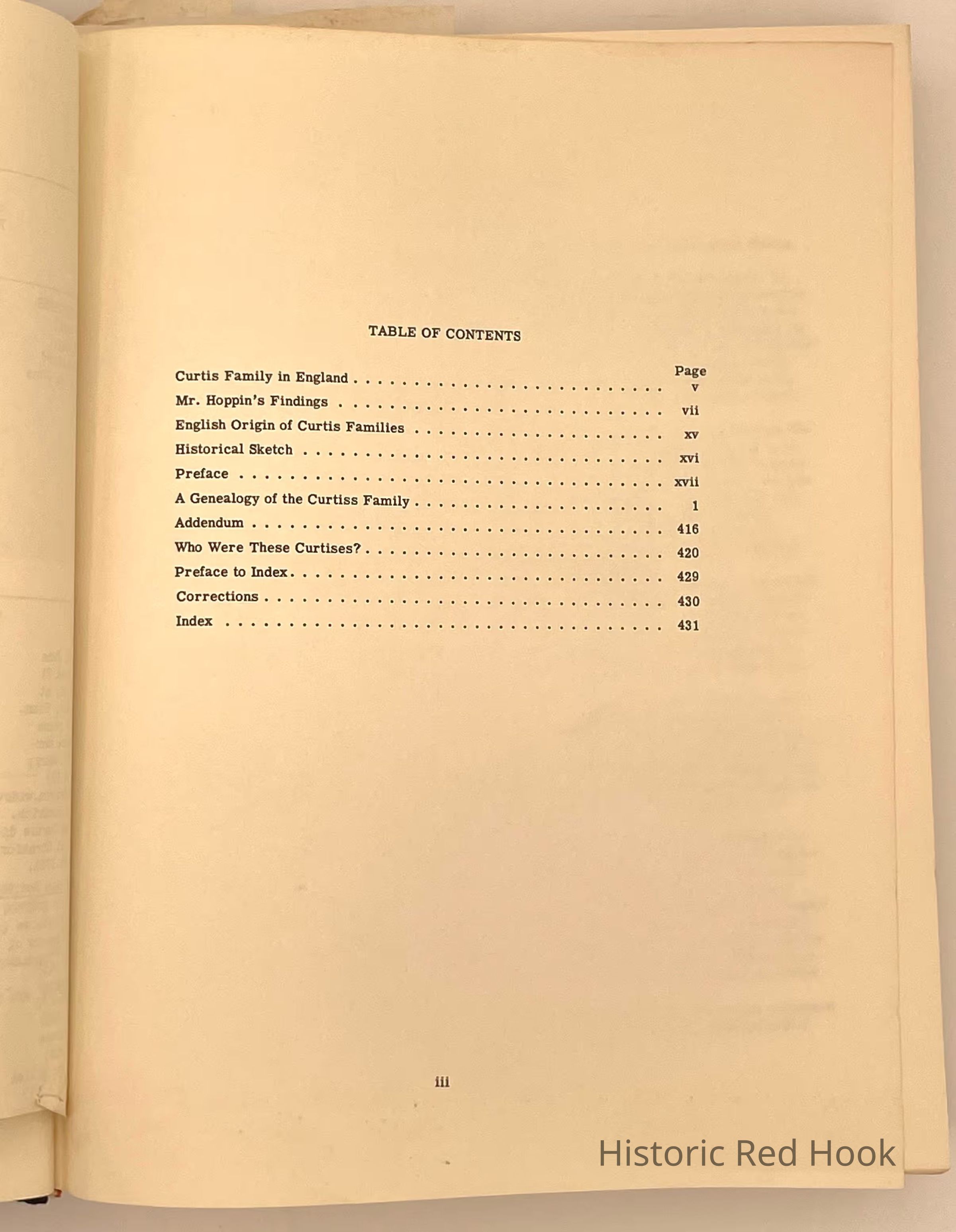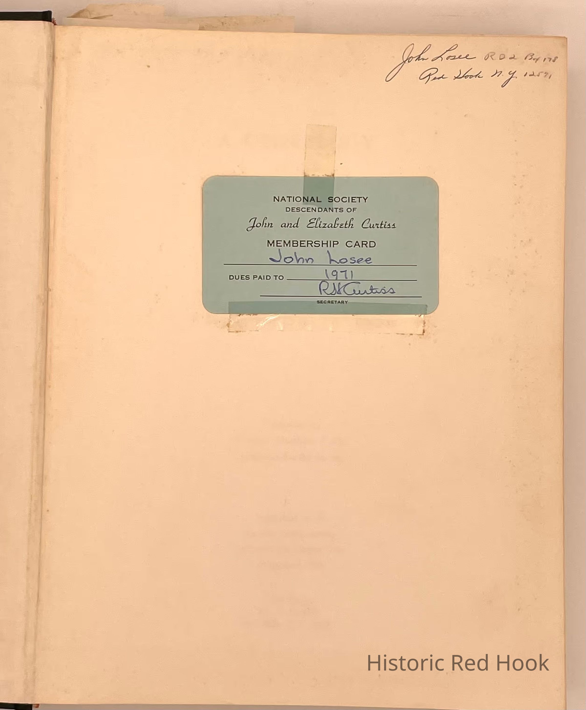 Genealogy book owned by John Losee of the Curtis Family