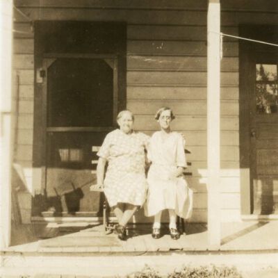 House in Madalin , two women sitting on a porch, name on the back of the picture is 'Rifenburgh'.Photograph Details