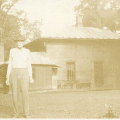Cottage on Clermont. Man standing in front of building. (Only the foundation exists now.)Photograph Details