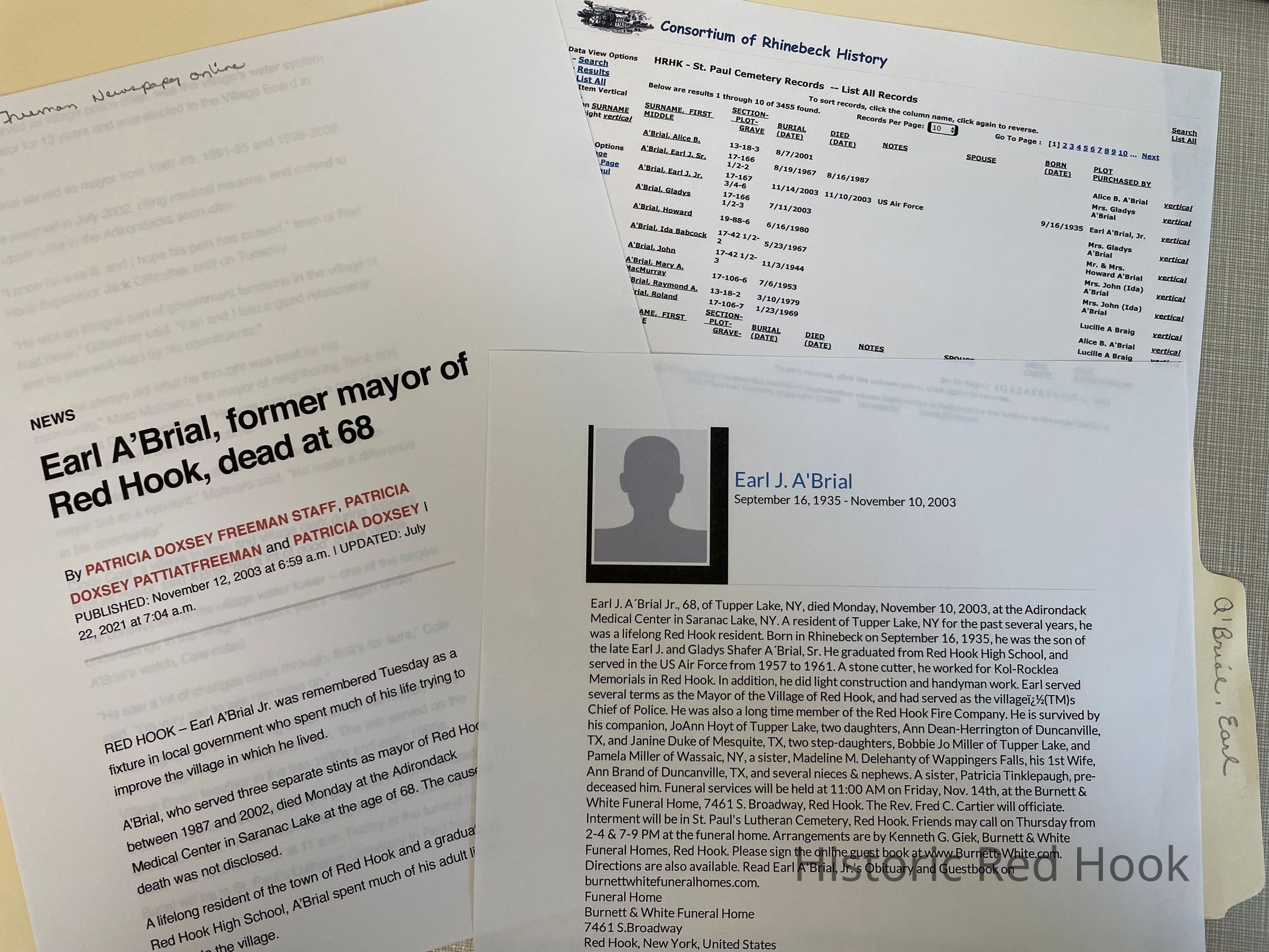 -St. Paul Cemetery records A'Brial familyCollection