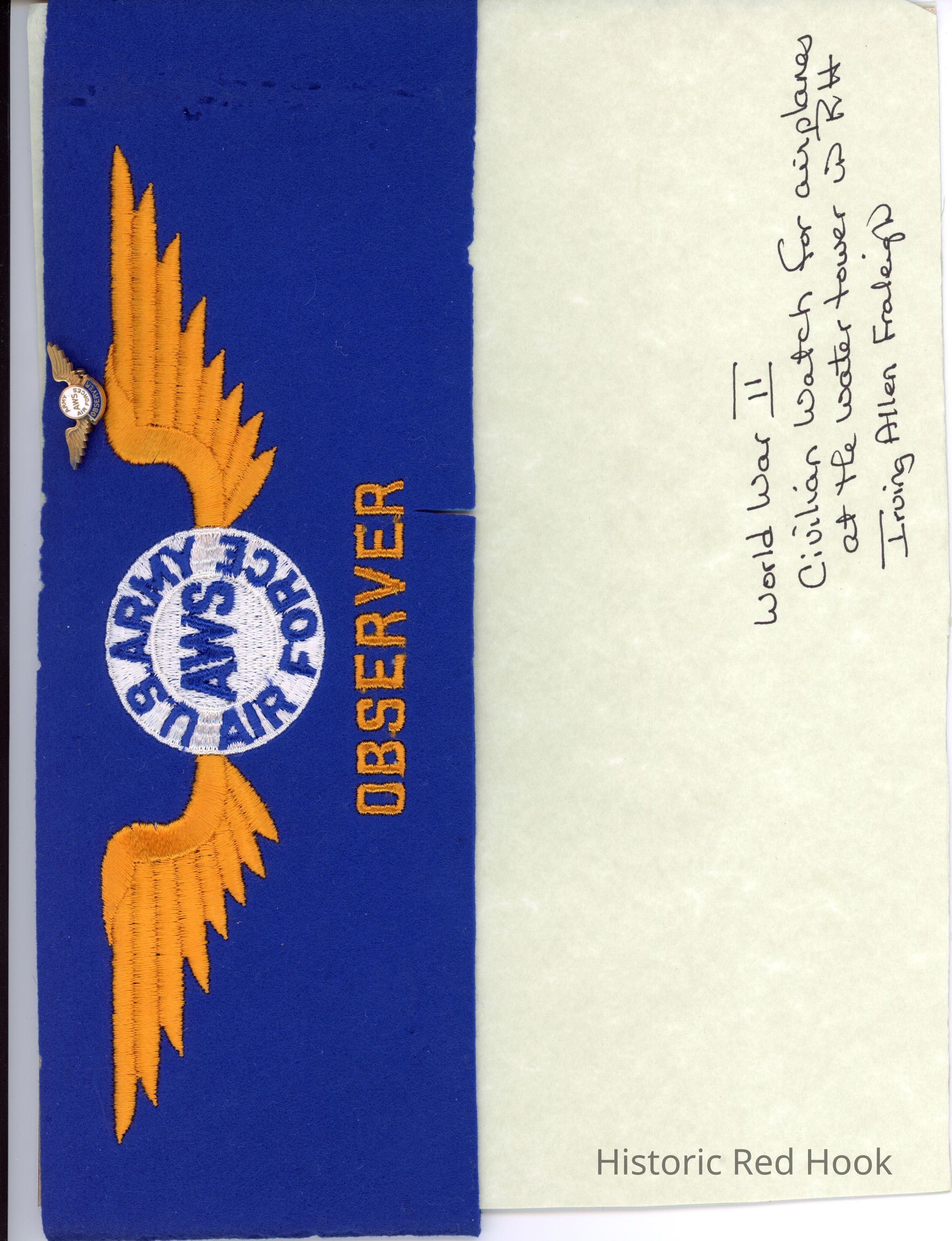 Air Force aircraft warning service certificate and correspondence, 1944