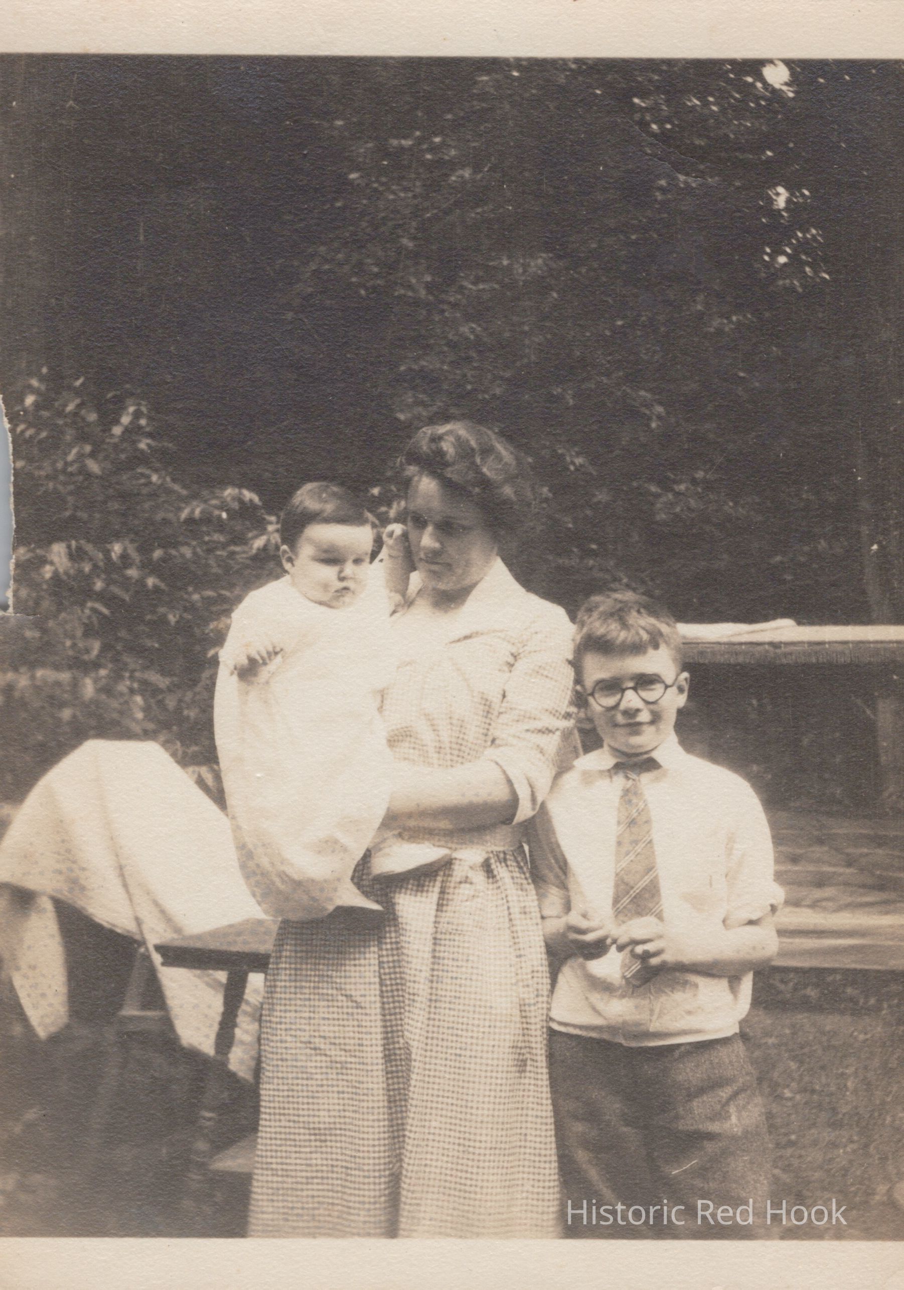 An informal outdoor photograph of Alice Arnold Kernochan with Arnold Fraleigh and Jack KernochanPhotograph Details