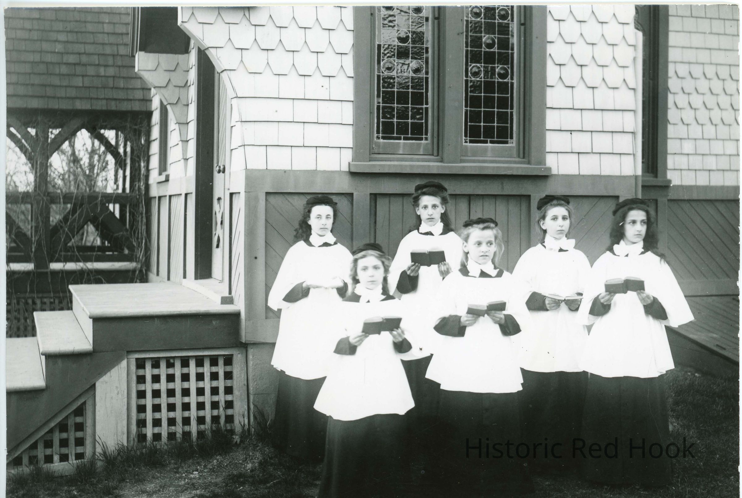 All Saints Chapel Choir Upper Red Hook, N.Y. Six girls in choir gowns, holding books.Photograph Details