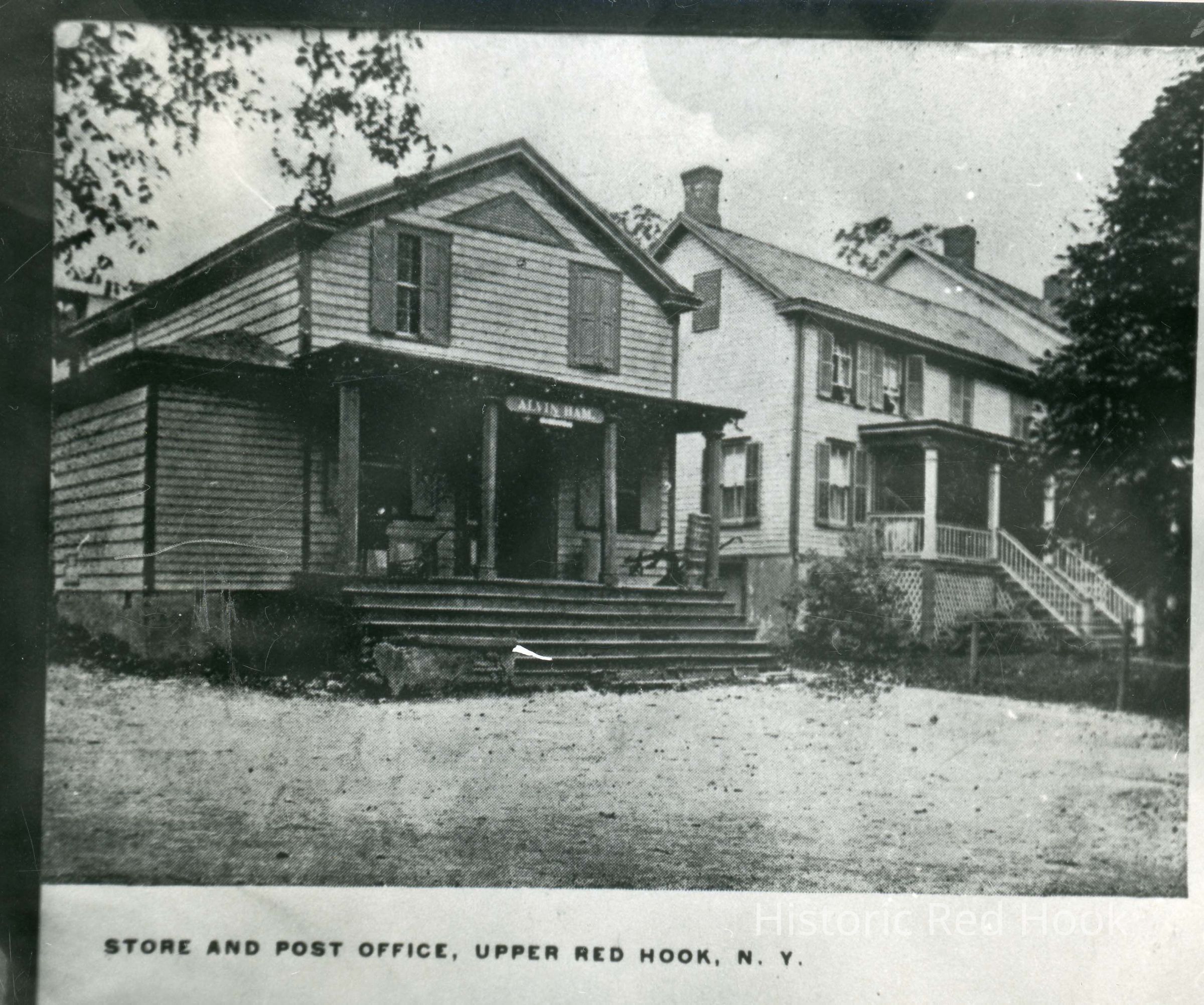 Copy of postcard showing Alvin Ham's store and post office, Upper Red Hook, late 19th Century.Photograph Details