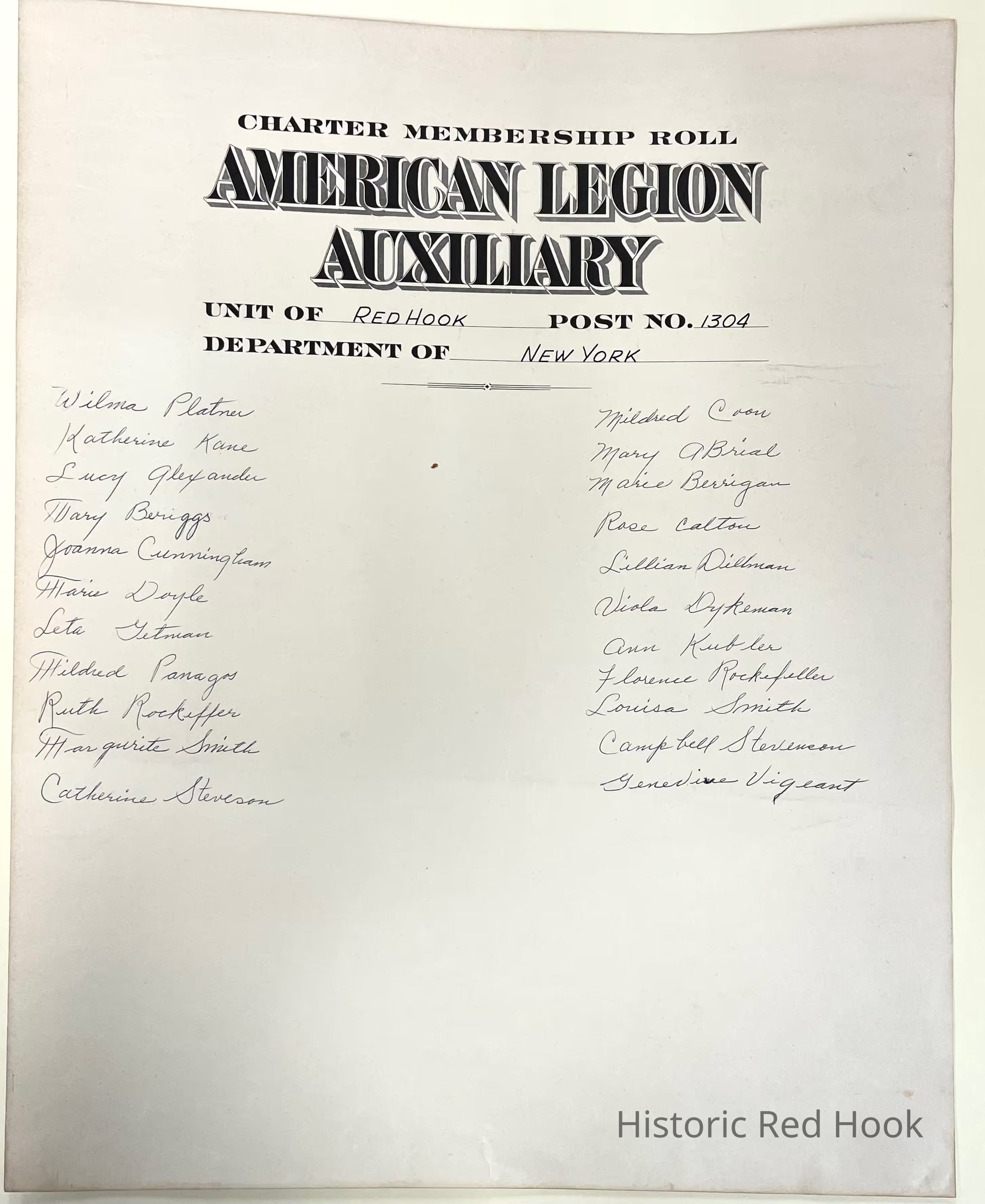 American Legion Auxiliary Charter certificateEntry/Object ID