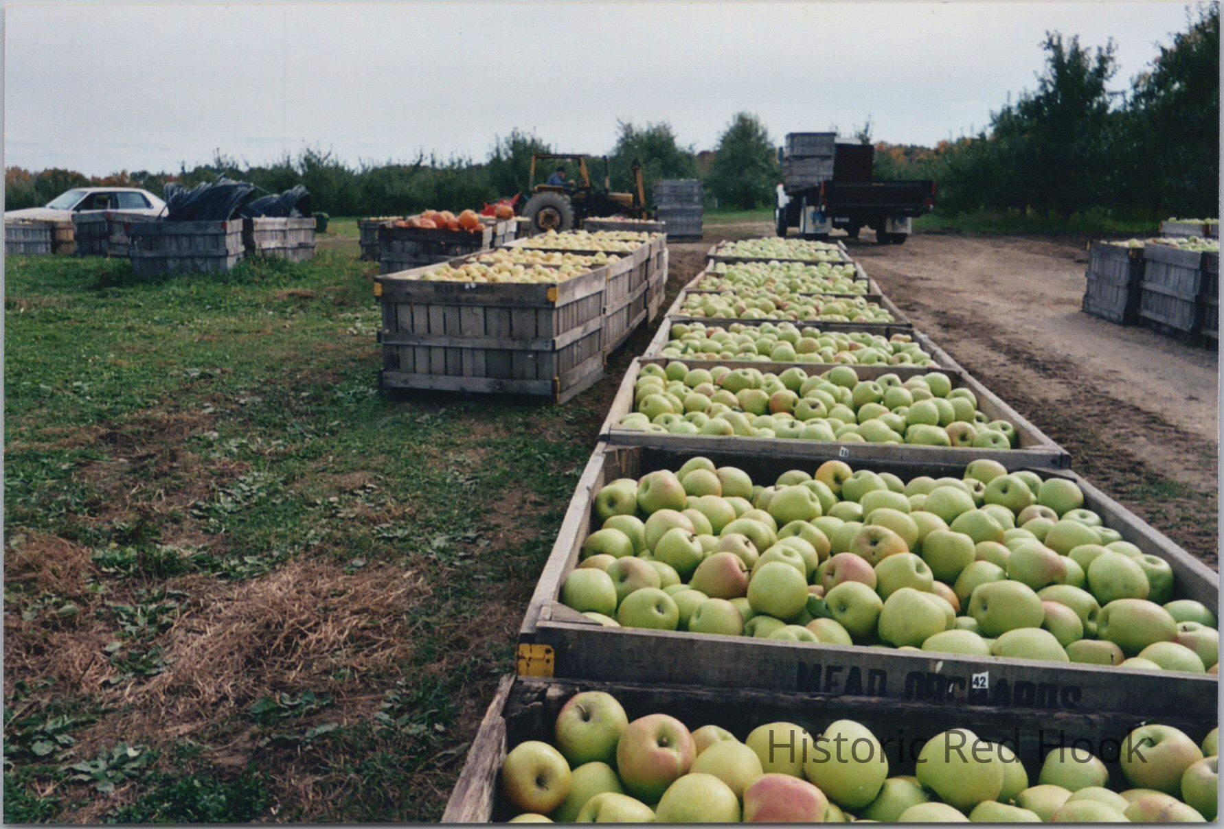 Apples loaded in crates on Mead Orchards Farm, 2003