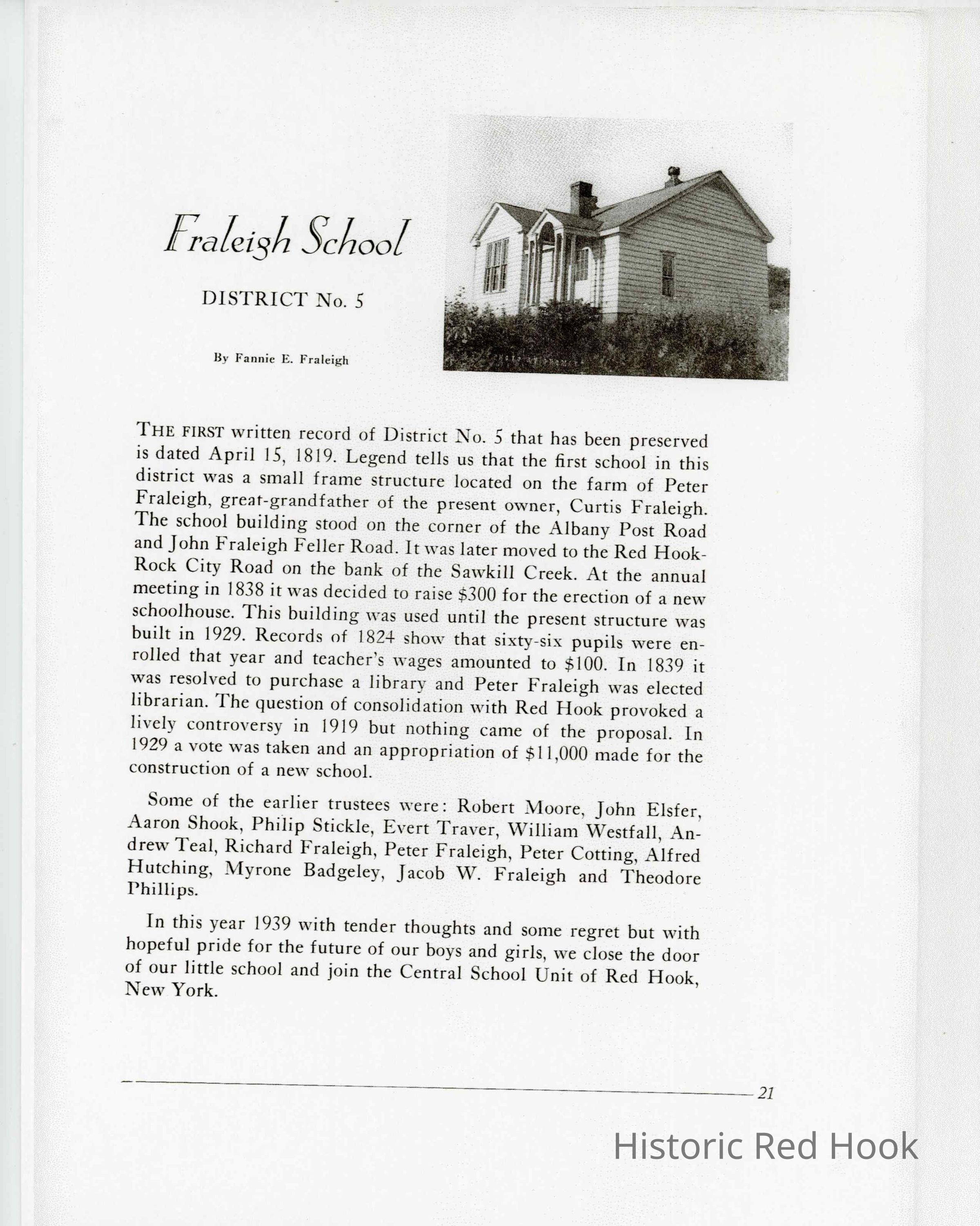 Two articles relating to the Fraleigh farm, one mentioning the Fraleigh School, the other of the Hucklebush line going by the farm.