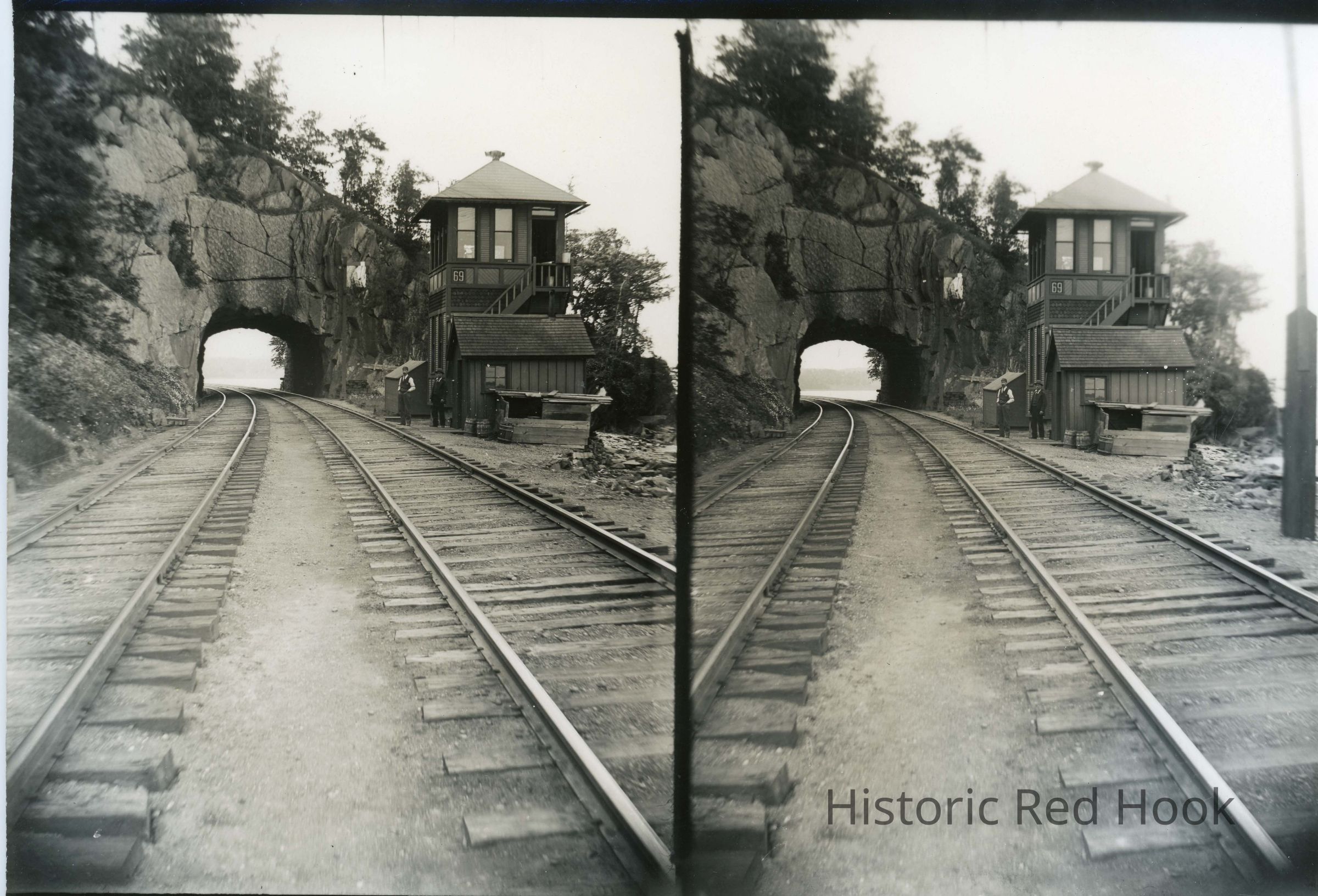 Stereoscopic image of railroad tunnel, presumably Astor Tunnel in Rhinebeck (?). The outside of the envelope that contained several prints said" #152 - Donated by John Losee: Prints from glass-plate negatives loaned by Earl A'Brial.Collection