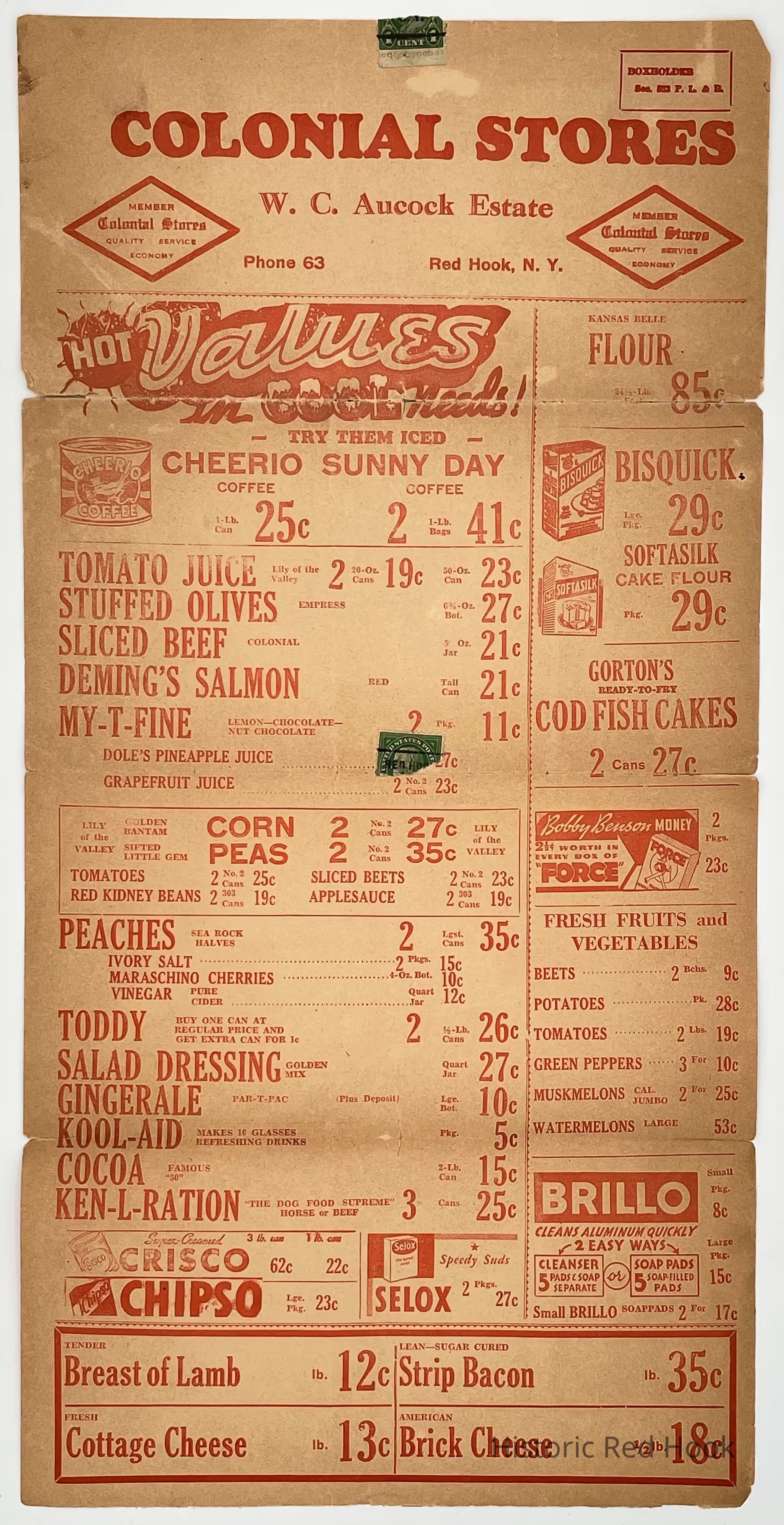 Mailed Flier advertising weekly specials at the W. C. Aucock Store.