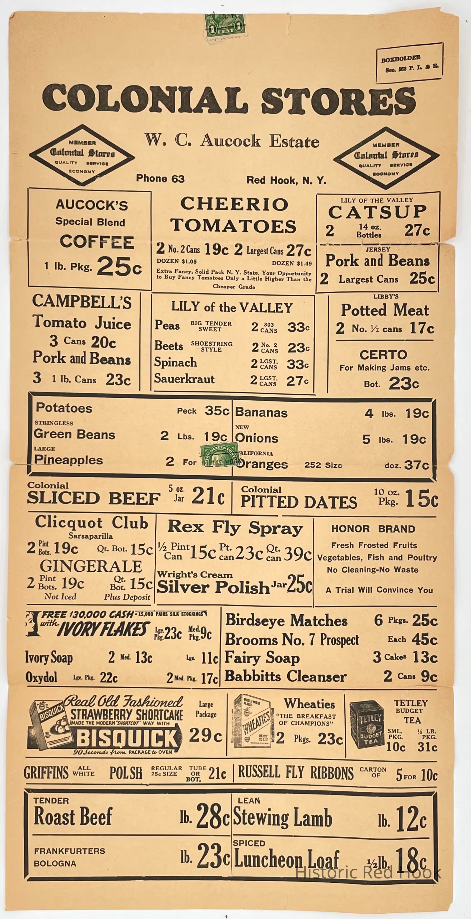 Mailed Flier advertising weekly specials at the W. C. Aucock Store.